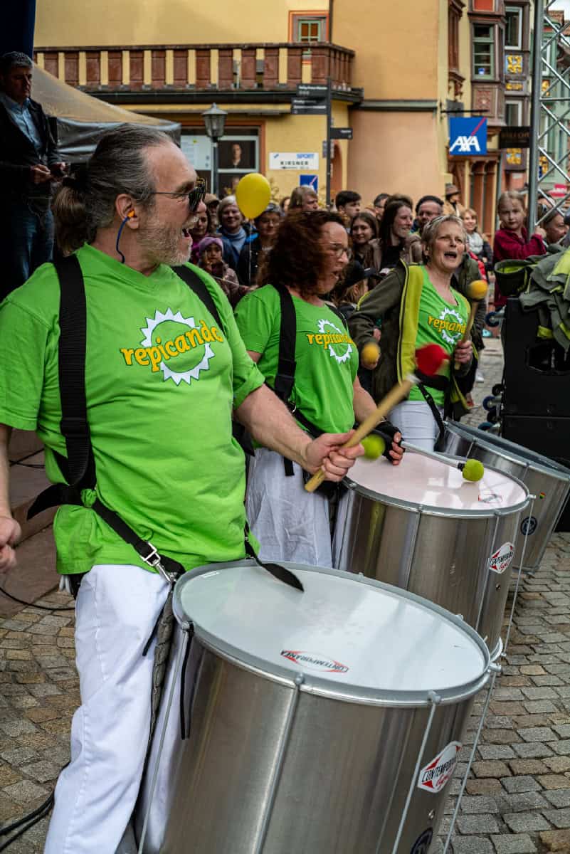 Bereits am Nachmittag: Die Samba-Trommlerinnen und Trommler der „Repicando Samba Brazil“.