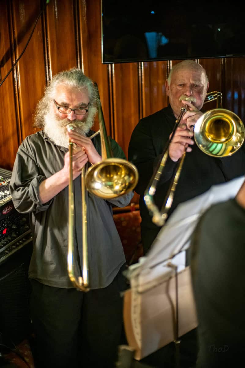 Bläser der „Bigband der Kulturwerkstatt“ in der „Hochbrücke“.