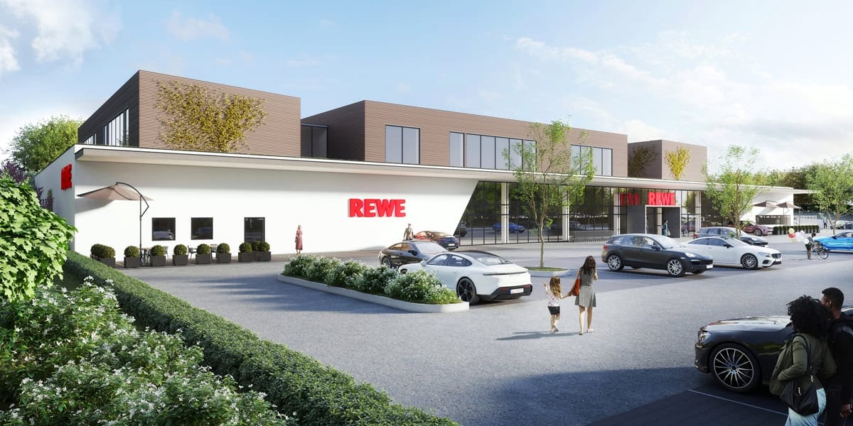 Nach fünf Jahren Stillstand geht es jetzt los auf dem früheren Baywa-Gelände in der Schramberger Straße: Heute war der erste Spatenstich für den Rewe-Lebensmittelmarkt und den „huckepack“ draufgesattelten Kindergarten.