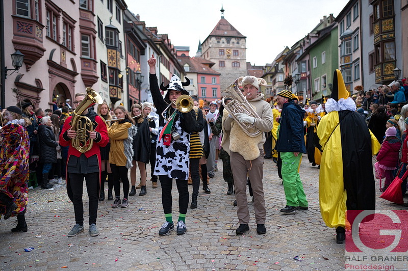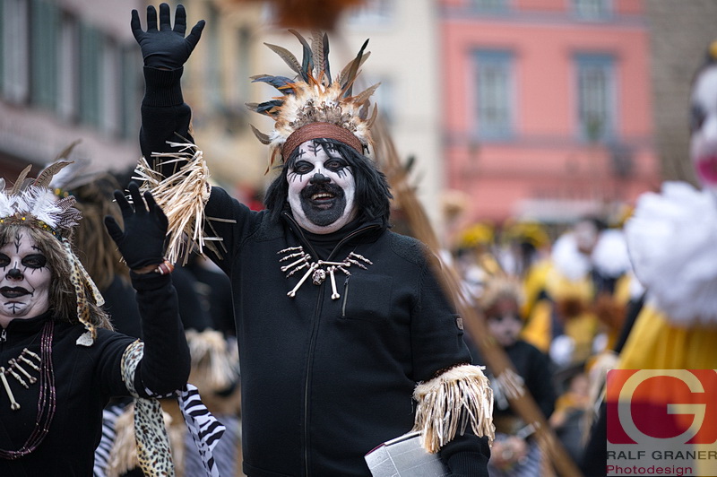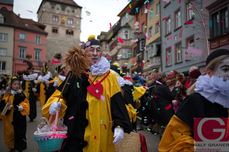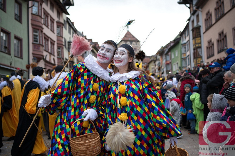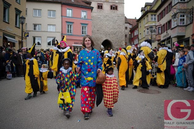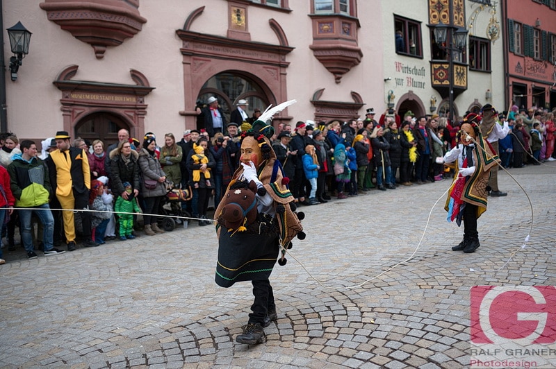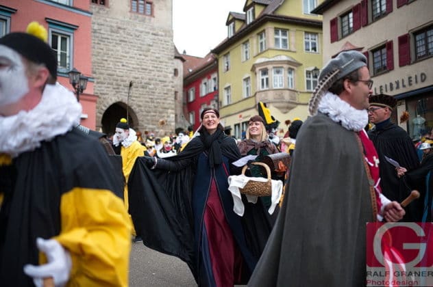 Ein schöner Fasnetssonntag in Rottweil geht zu Ende. Ein farbenprächtiger Zug der Narren bewegte sich fröhlich durch die Stadt.