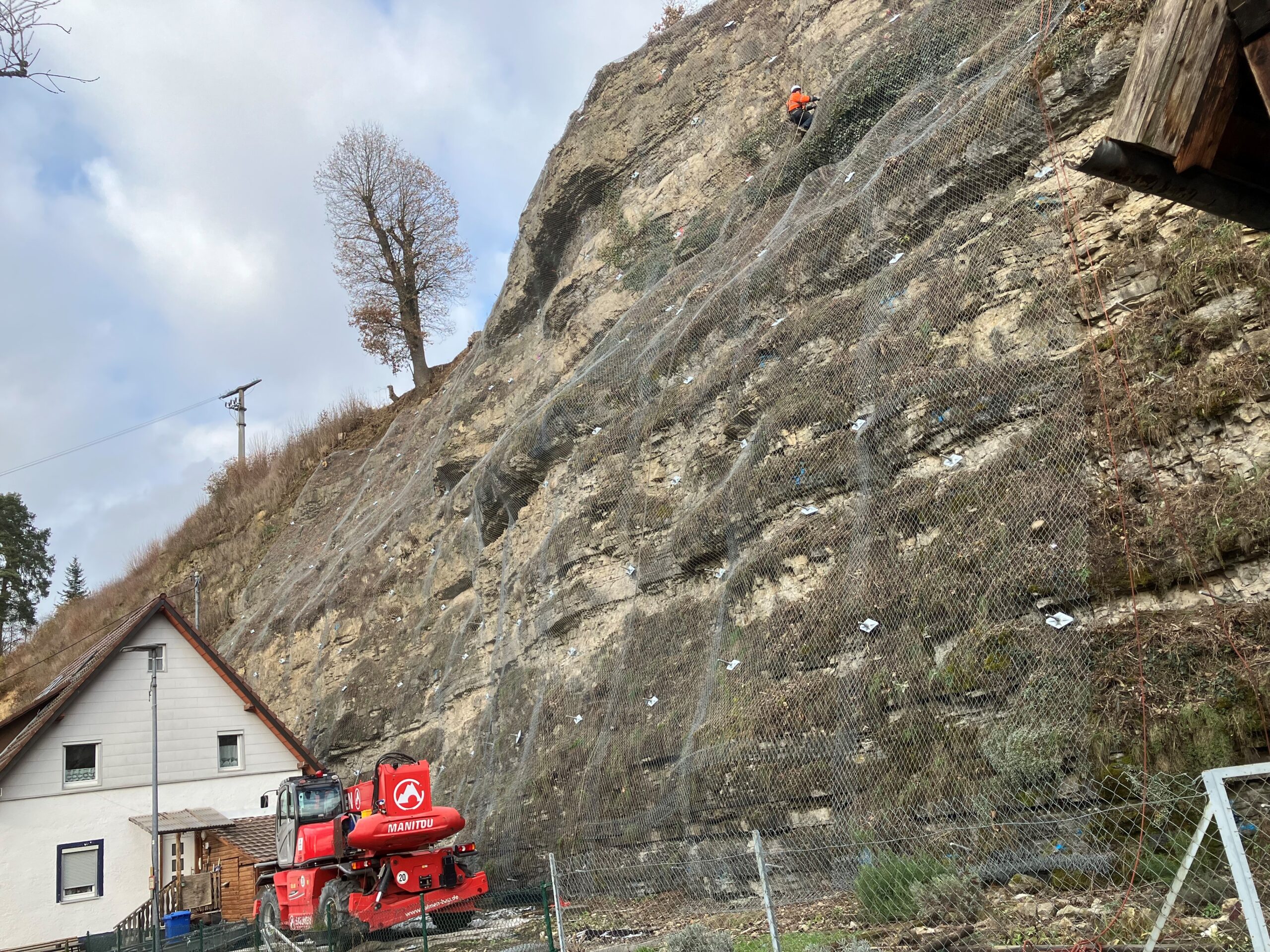 Die Arbeiten zur Felssicherung im Rottweiler Teilort Bühlingen sind abgeschlossen, meldet die Stadtverwaltung. Ein Stahlnetz soll nun die Wohnhäuser im Fischersteig und deren Bewohner vor herabfallenden Felsbrocken schützen. Auch der bestehende Nistplatz für die dort brütenden Uhus konnte hierbei erhalten bleiben.