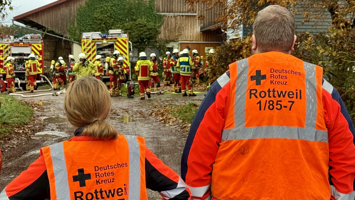 Die Feuerwehr stellte für den Einsatz 39 Kräfte in acht Fahrzeugen. Schon auf Anfahrt habe man sie darüber unterrichtet, dass keine Menschen in Gefahr seien, sagte der Rottweiler Feuerwehrsprecher Frommer. Das habe etwas Anspannung herausgenommen. Die Drehleiter blieb demnach in Bereitschaft, lediglich eine Wasserversorgung war rasch aufgebaut.