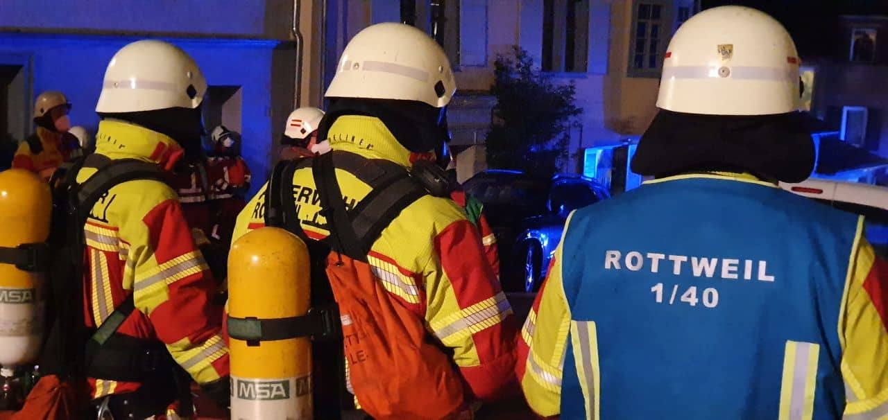 „Bereits beim Eintreffen des ersten Einsatzfahrzeuges konnte eine Rauchentwicklung im Gebäude festgestellt werden“, so Rüdiger Mack, Sprecher der Feuerwehr Rottweil, in einem Bericht am Sonntag. „Das erste eintreffende Löschgruppenfahrzeug begann unmittelbar mit dem Aufbau eines Löschangriffs und der Schaffung eines Zugangs durch die verschlossene Eingangstüre.“