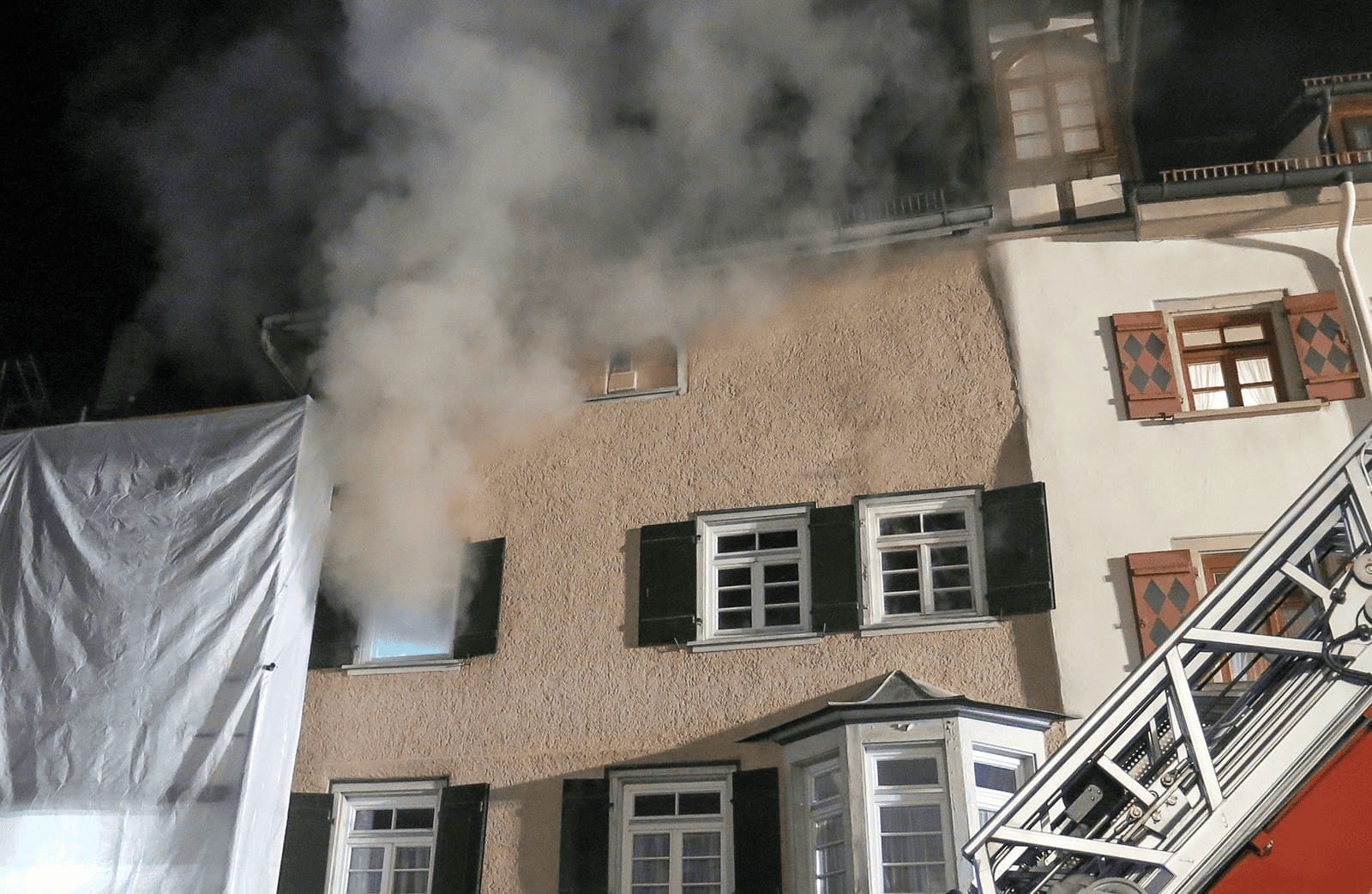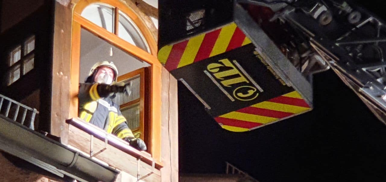 Die Feuerwehr war zunächst zu einem Brandmelderalarm gerufen worden. Ein Rauchmelder hatte angeschlagen, was die Bewohner des Nachbargebäudes des Brandhauses in dem historischen Straßenzug hörten. Sie riefen dann die Feuerwehr.