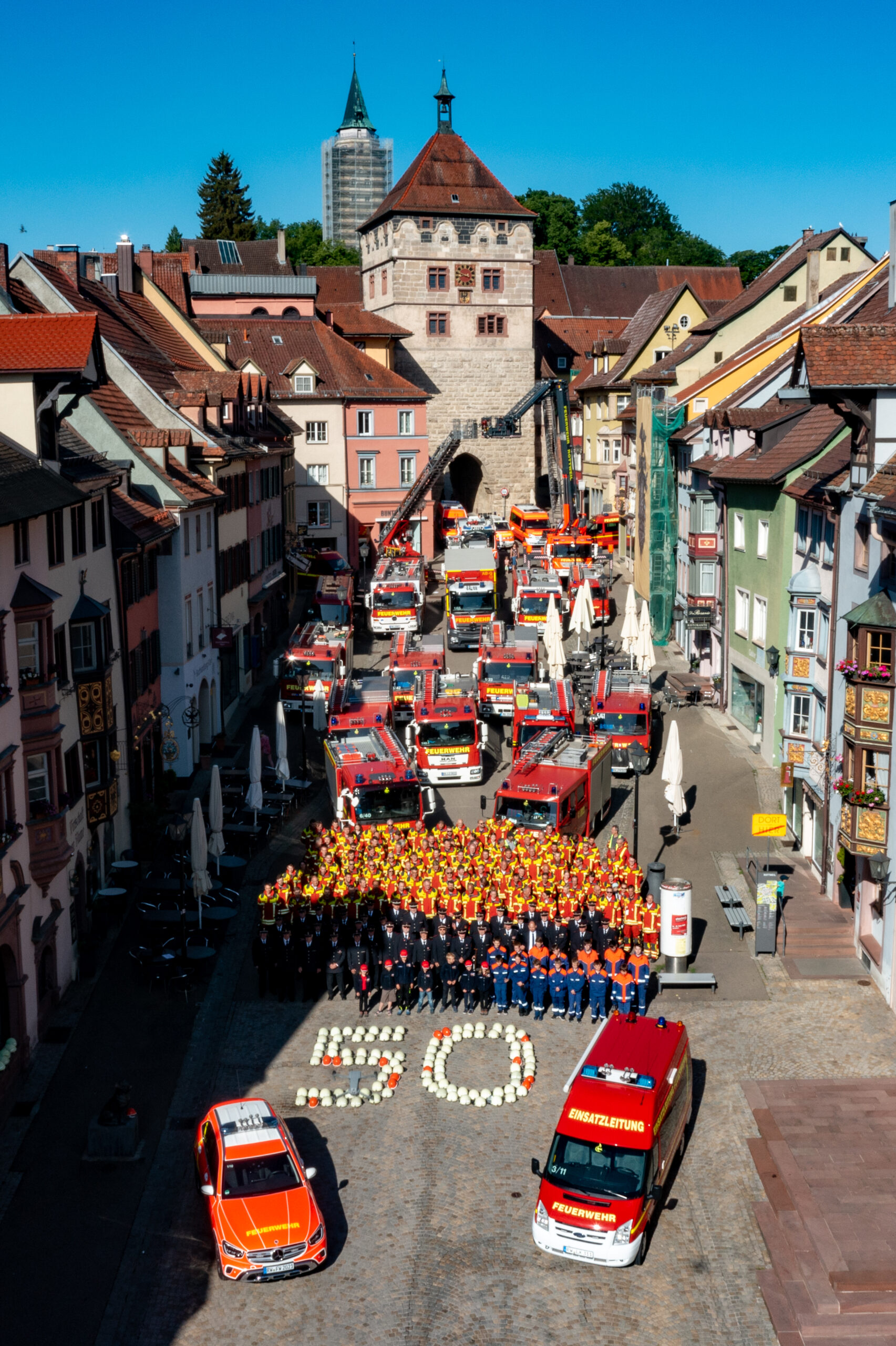 Was für ein Bild: Die Rottweiler Feuerwehrfrauen und -männer haben sich in der Oberen Hauptstraße versammelt, aufgestellt für ein Foto. Samt den Fahrzeugen. Alles, um einem Mann zu gratulieren, ihrem Boss: Stadtbrandmeister Frank Müller. Das Bild in der Hauptstraße ist sein Geschenk zum fünfzigsten Geburtstag. Seine Reaktion: „Ich bin überwältigt und mega stolz auf euch!“
