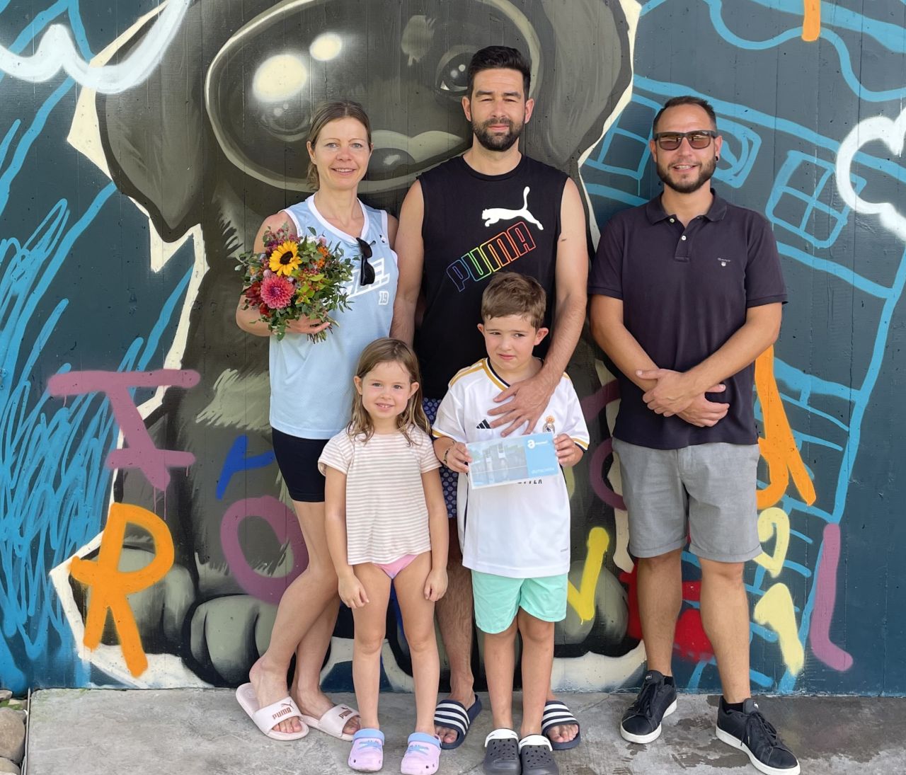 Strahlende Gesichter bei der Familie Peiker aus Göllsdorf: Als 75.000. Besucher der Freibad-Saison 2025 wurden sie am Eingang des Freibads Rottweil von Steven Ulrich, Abteilungsleiter Bäder der Energieversorgung Rottweil (ENRW), herzlich empfangen. Mit einem Blumenstrauß und einer Familiensaisonkarte Zwei Plus für die kommende Saison bedankte sich Ulrich bei den treuen Gästen.