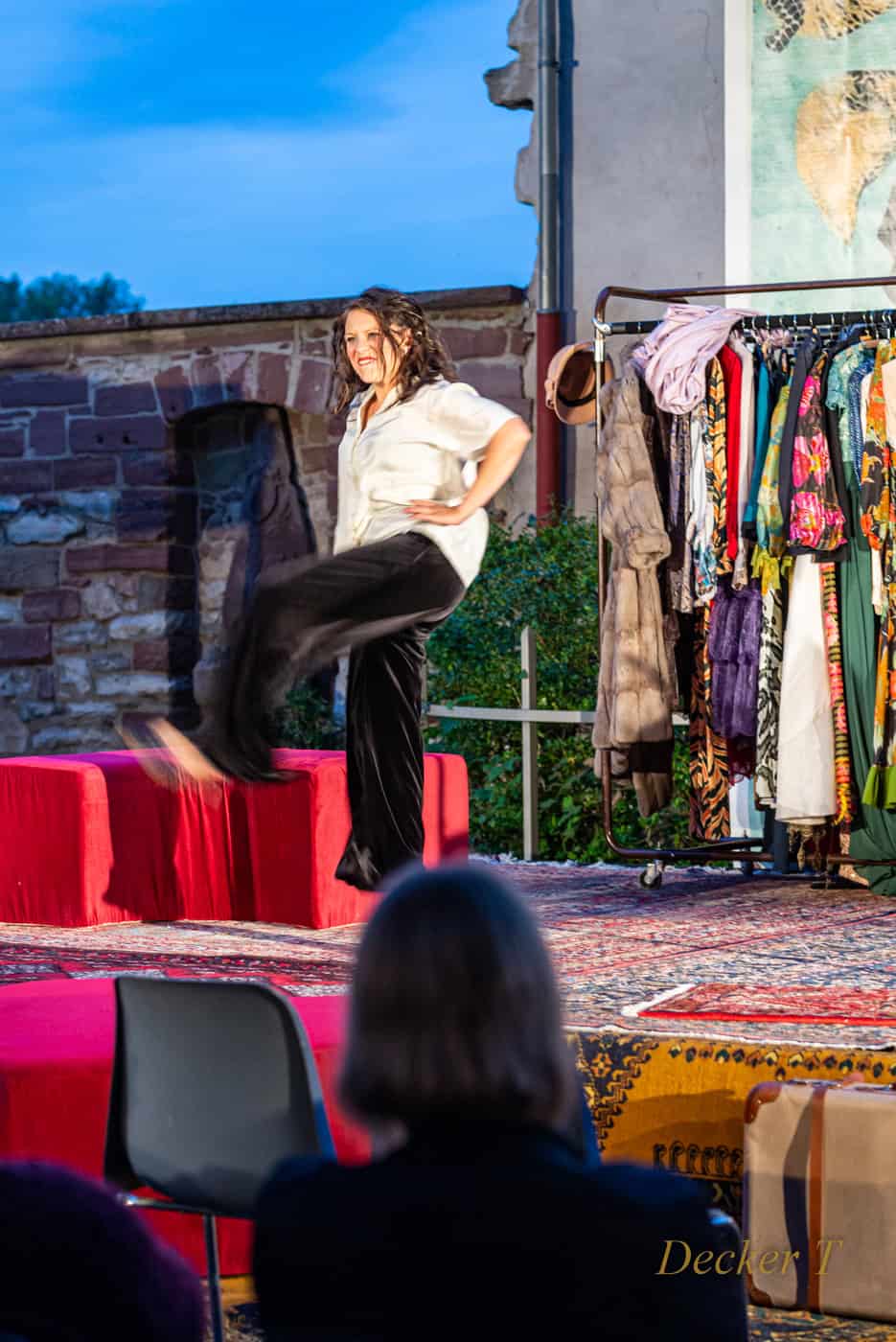 Viel zum Zauber des Theaterabends hat die mitreißend temperamentvolle Noro Kühnlein beigetragen. Angespornt von vielen belebenden Regie-Ideen Peter Staatsmanns nimmt sie die Gäste in Irmgard Keuns Klassiker „Das kunstseidene Mädchen“ charmant mit in das Berlin der Zwanzigerjahre. Für Schwung sorgen dabei zudem Dorin Grama (Akkordeon) und Nicholas Charkviani (Schlagzeug und Percussion).