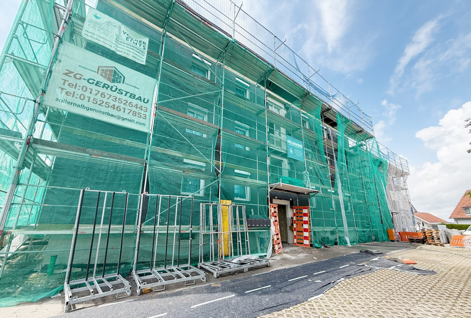 Derzeit sind die Gebäude 1 bis 3 in der Hochwaldstraße grün verhüllt. Dahinter wird kräftig gearbeitet. Gut 1,5 Millionen Euro investiert die Stadtbau Rottweil in die Modernisierung der Gebäude aus den 1960er Jahren. Rund 260.000 Euro sind davon durch eine Förderung der Kreditanstalt für Wiederaufbau (KfW)abgedeckt.