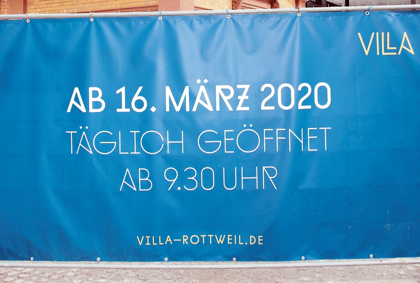 Am morgigen Samstag, 14. März, wollte das Team der Villa Duttenhofer in Rottweil die Opening-Party mit Live-Musik und DJ feiern. Doch die ist abgesagt, der aktuellen Coronavirus-Entwicklung wegen. Und einer Verfügung der Stadtverwaltung vorgreifend, die größere Versammlungen verbieten wird. Aber: Am Montag, 16. März, wird der Betrieb der Villa dennoch richtig losgehen.