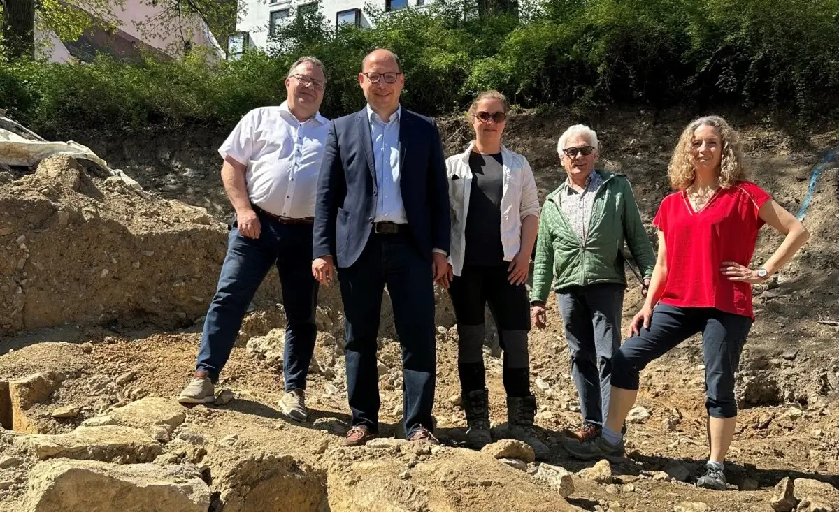 Oberbürgermeister Dr. Christian Ruf und Hängebrücken-Projektleiter Roland Haag zeigten sich beim gemeinsamen Besuch der Grabungsstätte fasziniert und beeindruckt. Zudem dankten sie dem Grabungsteam dafür, dass die Arbeiten absolut im Zeitplan lagen und nun umgehend mit den Brückenbauarbeiten begonnen werden könne, und vielleicht werde es ja für künftige Hängebrückenbesucher hier auch ein Schaufenster in die Geschichte geben.
