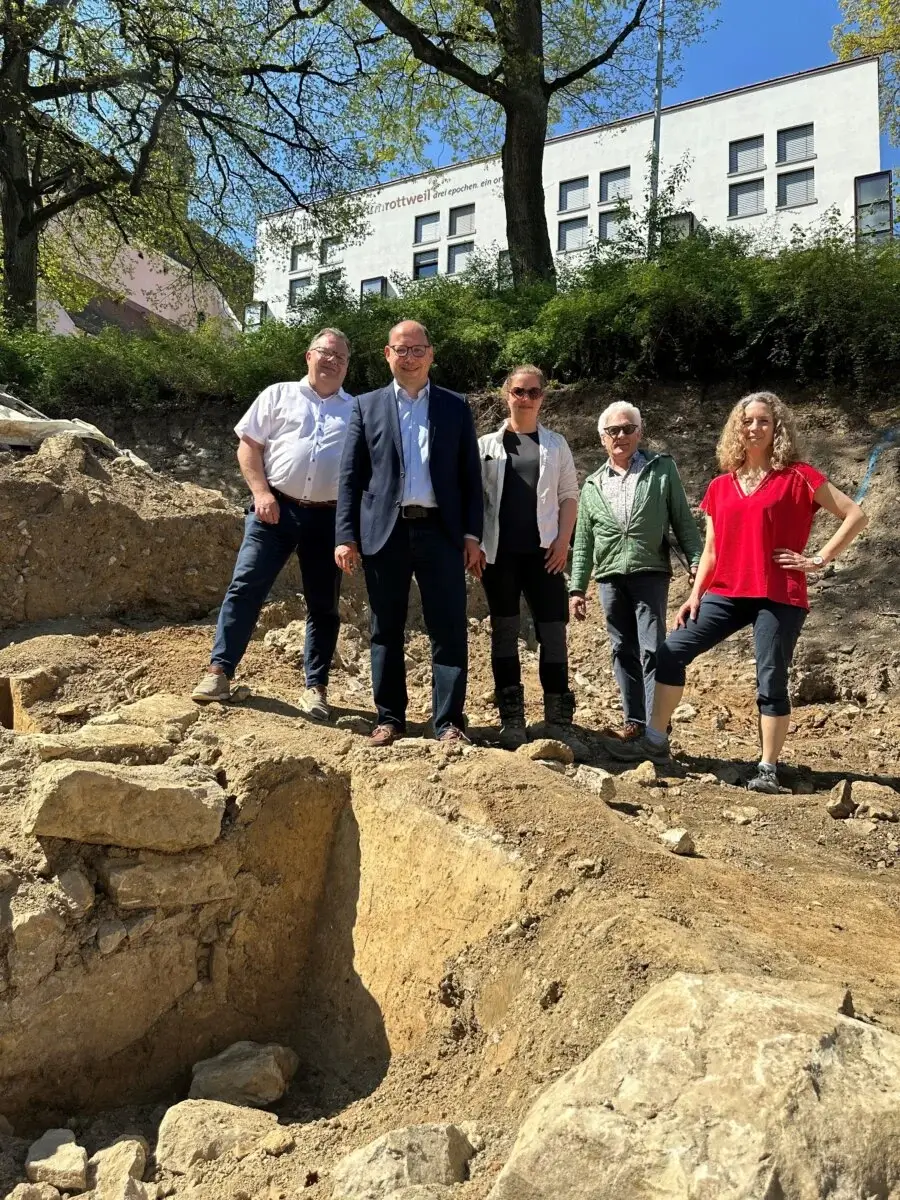 Mehrere Wochen hatten die Archäologen der Grabungsfirma ArchaeoBW GmbH am Bockshof Quartier bezogen und den Boden nach Spuren aus der Vergangenheit untersucht. Die fachliche Betreuung der Grabung wurde durch die Fachreferentin Caroline Bleckmann vom Landesamt für Denkmalpflege mit Dienstsitz Freiburg und mit tatkräftiger Unterstützung der Außenstelle Rottweil durchgeführt. Mit dabei waren auch Christoph Wulfmeier von der Außenstelle Rottweil, der langjährige Grabungsleiter Thomas Schlipf, der ehrenamtlich beratend tätig ist, und Grabungsleiterin Katarina Fellgiebel von ArchaeoBW.