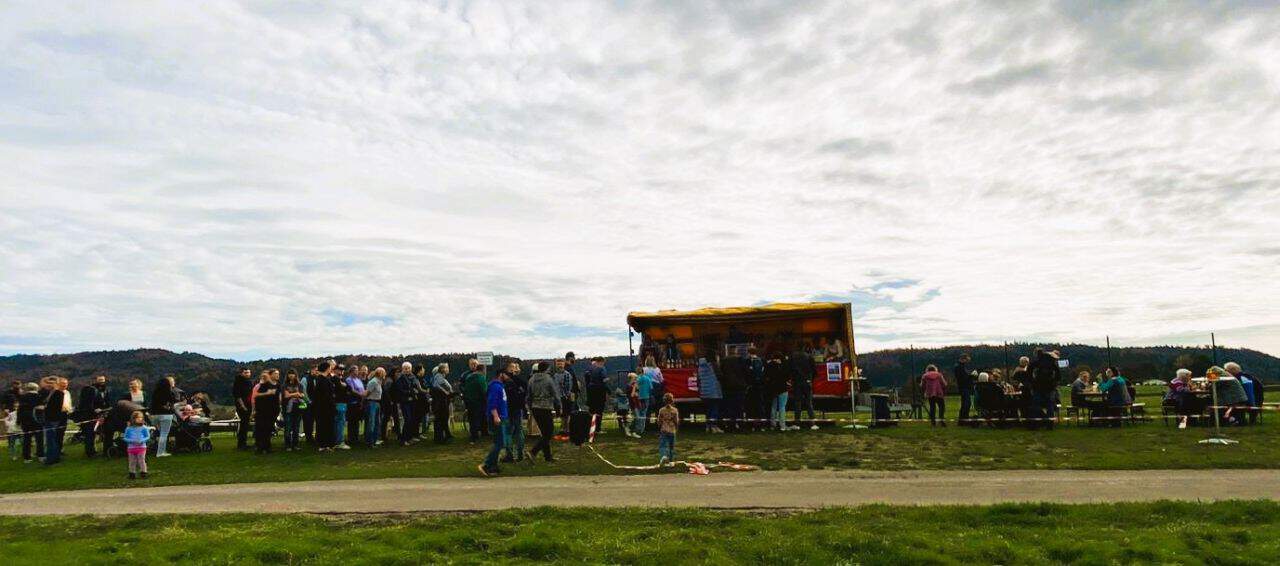 Im Hof, beim Vereinstrakt wurden Kuchen, Waffeln und Kaffee angeboten. Mit vor Ort war auch das Kaffeemobil der Lebenshilfe Rottweil. So gestärkt ging es weiter, vorbei am Feuerwehrhaus über das Dättele durch den herbstlichen Wald zu „Grafs Ranch“. In diesem verwunschenem Gartengrundstück stand eine Mannschaft bereit, welche die Spaziergänger mit Grillwurst und Getränke versorgte. Bei Kindern besonders beliebt war Stockbrot das man am offenen Feuer selbst grillen durfte.