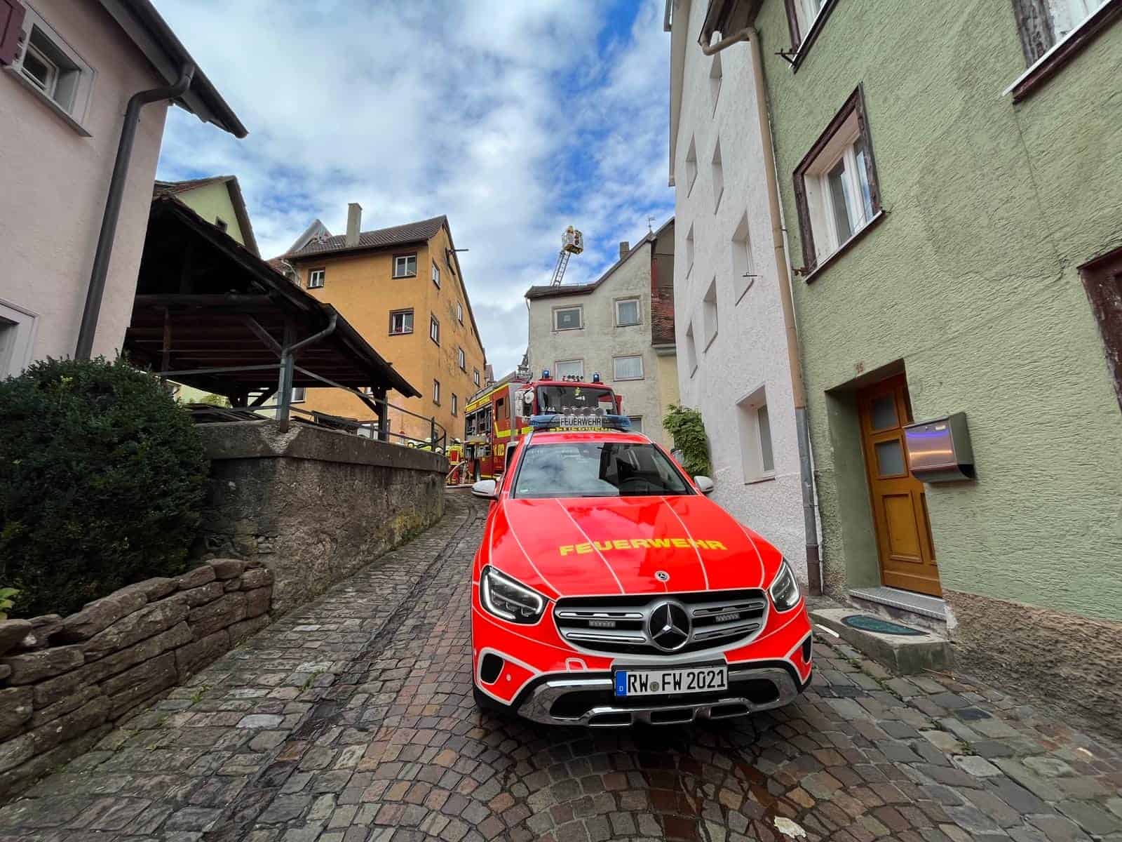 Es sollen alle Abteilungen der Feuerwehr Rottweil an der Übung teilnehmen. Das bedeutet: rund 25 Fahrzeuge aus allen Ortsteilen mit mehr als 100 Einsatzkräften rücken aus. Ihnen war zuvor nur bekannt, dass der Beginn um 14 Uhr sein würde.