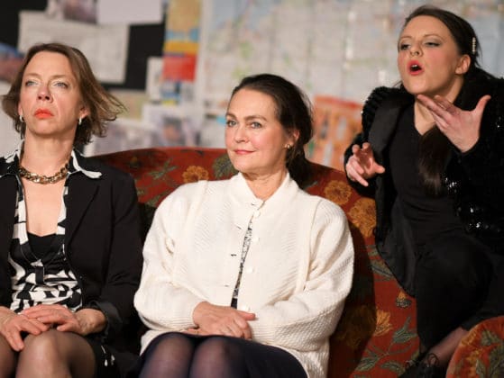 So erlebt man denn mit, wie diese Frauen, getrieben von äußeren und inneren Nöten und Erwartungen, um Perspektiven ringen, sich aufreiben oder arrangieren. Und verzweifeln. Marie etwa, die einstige Jeanne d’Arc, wünscht sich nichts sehnlicher als die Nähe ihrer Kinder – eine Nähe, die sie ihnen früher freilich auch nicht schenkte. Petra Weimer lässt diese Sehnsucht sensibel spürbar werden. Sie verleiht der launischen Patriarchin mit zerbröselndem Geist bewegende Präsenz.
