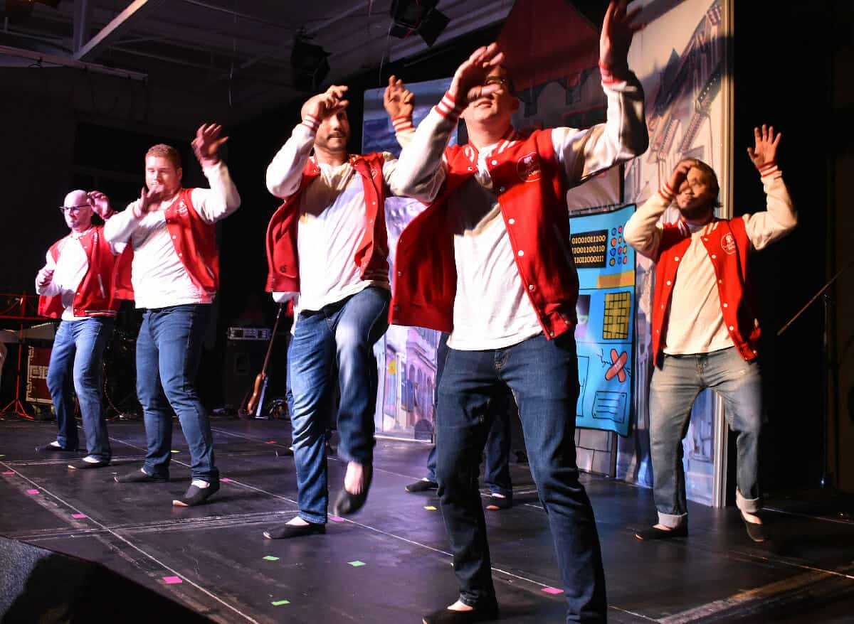 Das Männerballett, geleitet von Luisa Wilde, führte in mehreren Tänzen ebenfalls durch die Zeit. Das Rock’n’Roll-Zeitalter, die Disco-Welle, Twist, Soul – für alles hatte die mehrköpfige Gruppe passende Tänze einstudiert. Weitere junge Kräfte, die der altehrwürdigen Narrhalla gut taten.