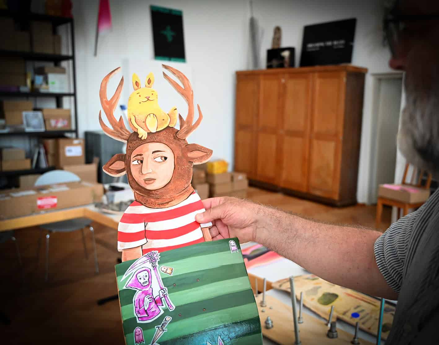 Im Vorfeld der Ausstellung bot sich in den Räumen von Forum am Friedrichsplatz ein eindrucksvoller Anblick: Dicht an dicht lagen die eingesandten Objekte. Was die Kreativen aus den gut 80 auf 20 Zentimeter messenden hölzernen „Decks“, die das Herzstück von Skateboards bilden, wieder geschaffen haben, ist immer wieder überraschend.