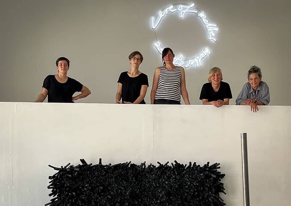 An den großen Anklängen hat das Leipziger Künstlerinnen-Kollektiv durchaus Freude, wie Agnes Lammert, Sprecherin der Gruppe, im Gespräch mit der NRWZ erkennen lässt. Im Kern jedoch zielt der Titel auf etwas Anderes. Nämlich darauf, dass sich hier Bildhauerinnen zusammengetan haben, die mit konkreten Materialien arbeiten – eine bewusste Profilschärfung, während immer mehr digitale Konzepte eine teils entmaterialisierte Kunstproduktion durchdringen. Und auch ein prägnanter Kontrapunkt zum Image Leipzigs als exponiertem Standort von Malerei.