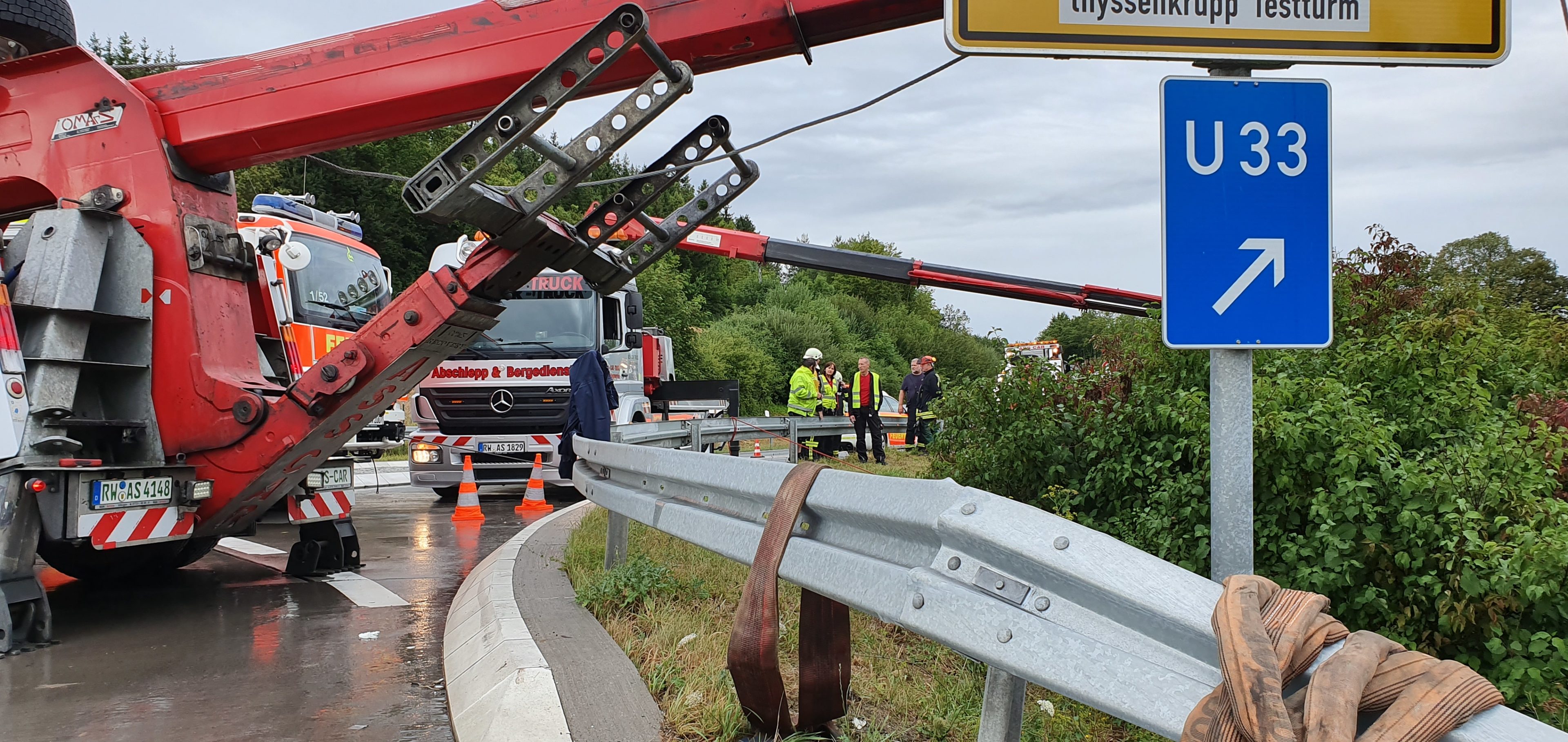 Die übernimmt ein Spezialunternehmen aus Oberndorf. Drei Fahrzeuge werden dazu eingesetzt, zwei große, ein quasi normaler Abschleppwagen. Kein Kran, bislang. Die