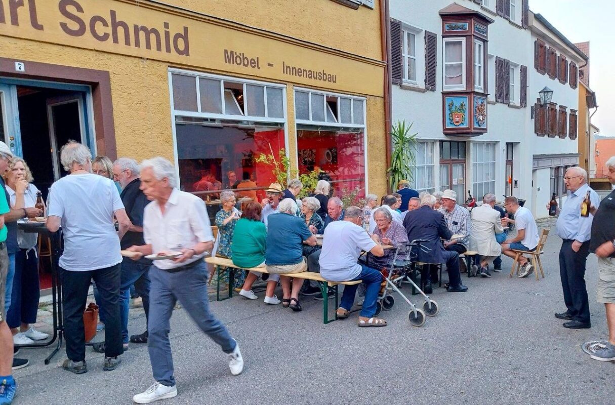 Das Lorenzbrot mit dem Bildnis des Heiligen, der den Rost in der Hand hält, solle uns erinnern, dass das gesegnete Brot früher an die Armen verteilt wurde und soll uns Mahnung sein, auch heute noch auf die Armen und Heimatlosen in unserer Gesellschaft zu achten. Der Gottesdienst wurde musikalisch von Musikern und Sängern der SE IV Band um Patrick Mink begleitet. Nach dem Gottesdienst segnete Pfarrer Schlenker noch das Lorenz-Brot. Das ist ein Springerle mit dem Bild des Heiligen Laurentius. Die Bäckerei Mink hat davon auch in diesem Jahr wieder eine große Anzahl gebacken. Am Schluss lud Thomas Schlipf noch zum gemütlichen Beisammensein ins Schwarze Lamm ein, wo Rainer Prinzing mit seinem Team drinnen und draußen an diesem warmen Sommerabend die vielen Gäste bewirtete.