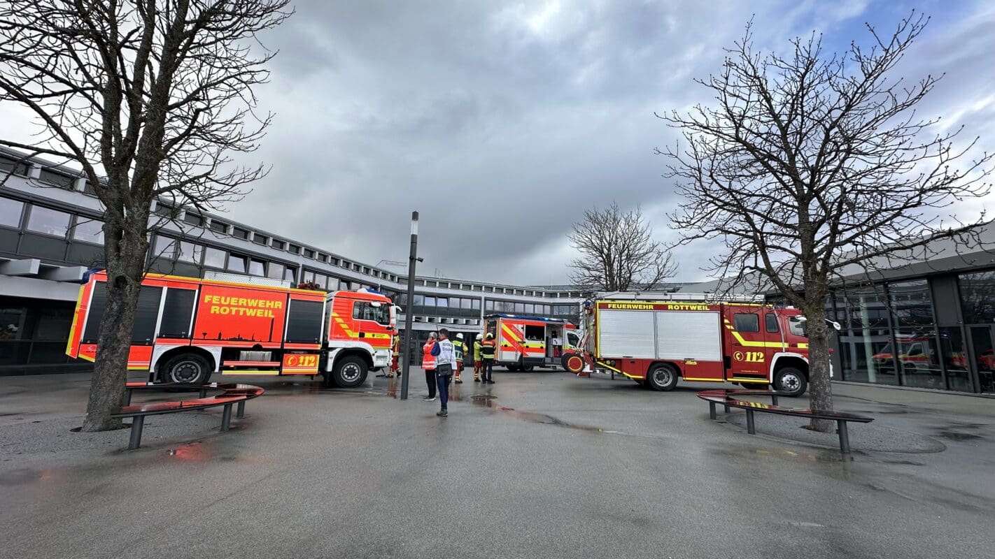 Am Montag gegen 13.30 Uhr kam es zu einem Großeinsatz von Feuerwehr und Rettungsdienst an den beruflichen Schulen in Rottweil. Es wurde zunächst ein möglicher Massenanfall an Verletzten befürchtet. Am Ende waren es glücklicherweise laut Feuerwehr und DRK zehn Leichtverletzte, die Polizei korrigierte die Zahl inzwischen auf neun. Niemand musste in ein Krankenhaus. Was fehlt ist der Täter. Die Polizei hofft auf Hinweise.