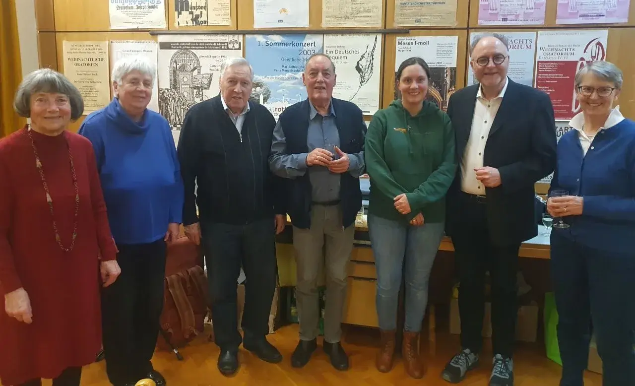 Im Rahmen einer Feierstunde nach einer verkürzten Chorprobe gratulierte der Münsterchor Peter Strasser zu dessen 85. Geburtstag, den er am 10. März begangen hatte. Strasser leitete den Münsterchor von 1975 – 2008.