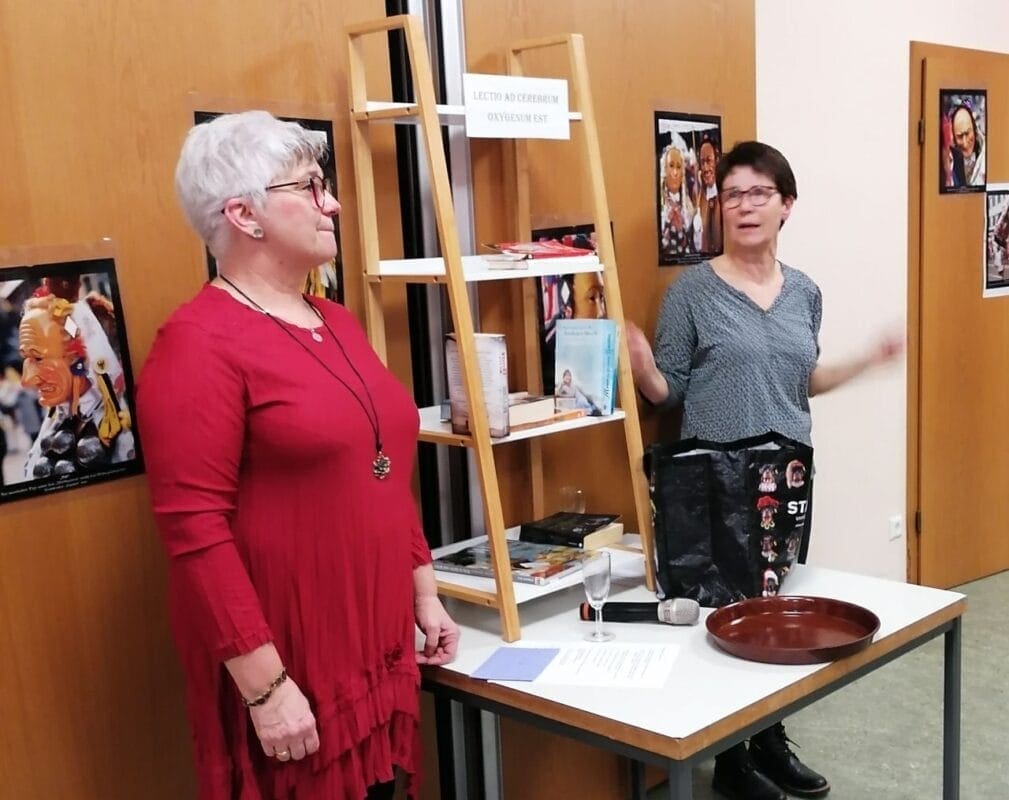 Annette Efinger-Rieger und Melanie Rasp hatten sich dazu direkt am neu errichteten Bücherhäusle in der Altstadt getroffen und über die Bücher, deren Besitzer und deren Haustiere viel zu erzählen gewusst, also Narrenstückle wieder gekonnt aufgereiht.