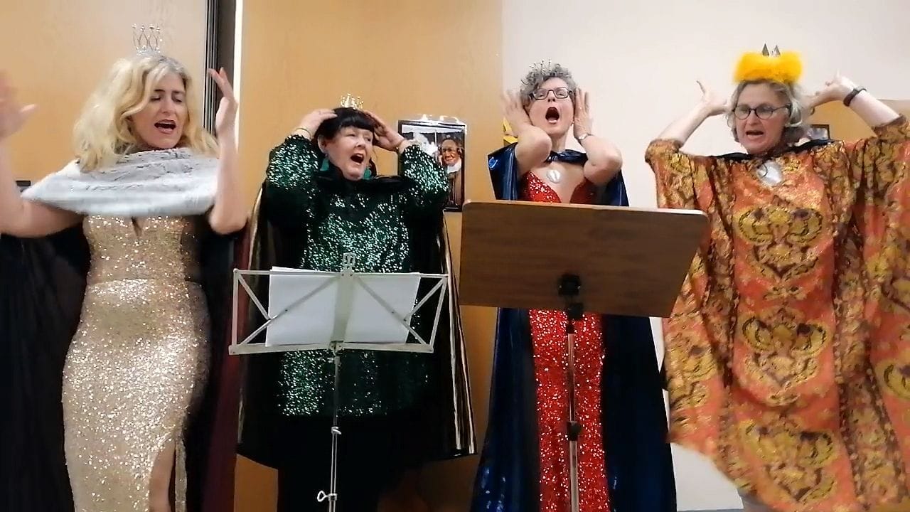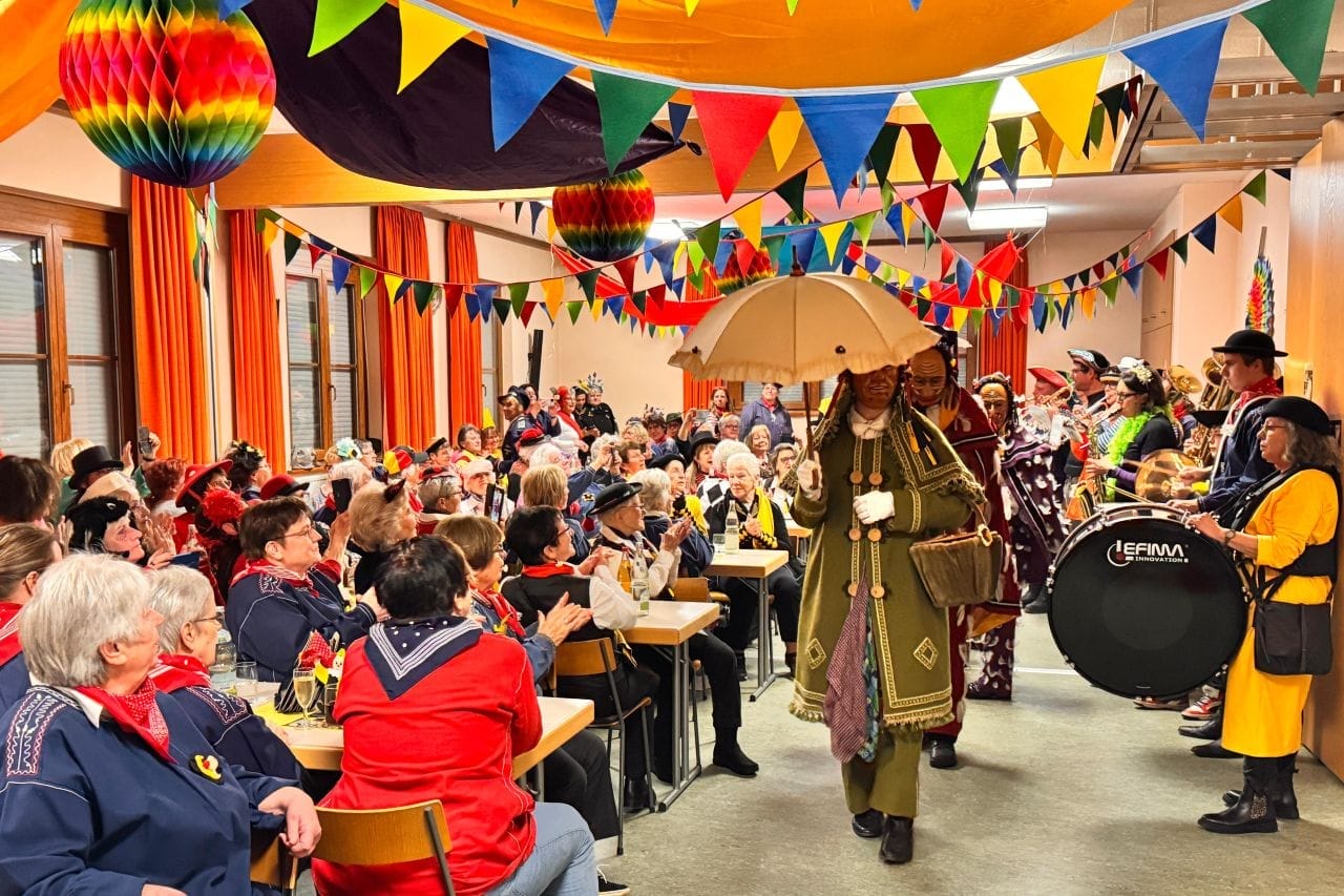 Effektvoll vorgeführt und für alle Gäste zum Mitüben: „Krönchen richten – loben und weiter geht’s“. Ein gelungener Mix aus Achtsamkeit, Lebensfreude und Fasnetsglückseligkeit.