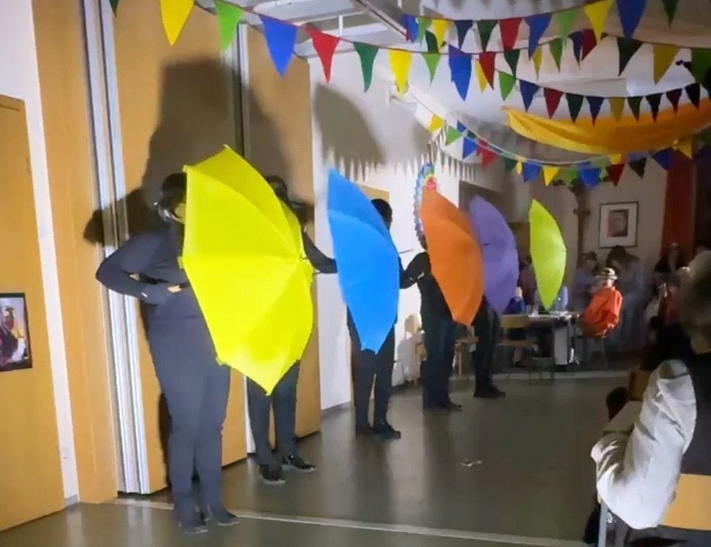 Schirmen im Scheinwerferlicht bestaunt werden. Die Alfa-Damen mit schwarzer Perücke und Spitzenmasken ließen diesmal die Schirme tanzen.