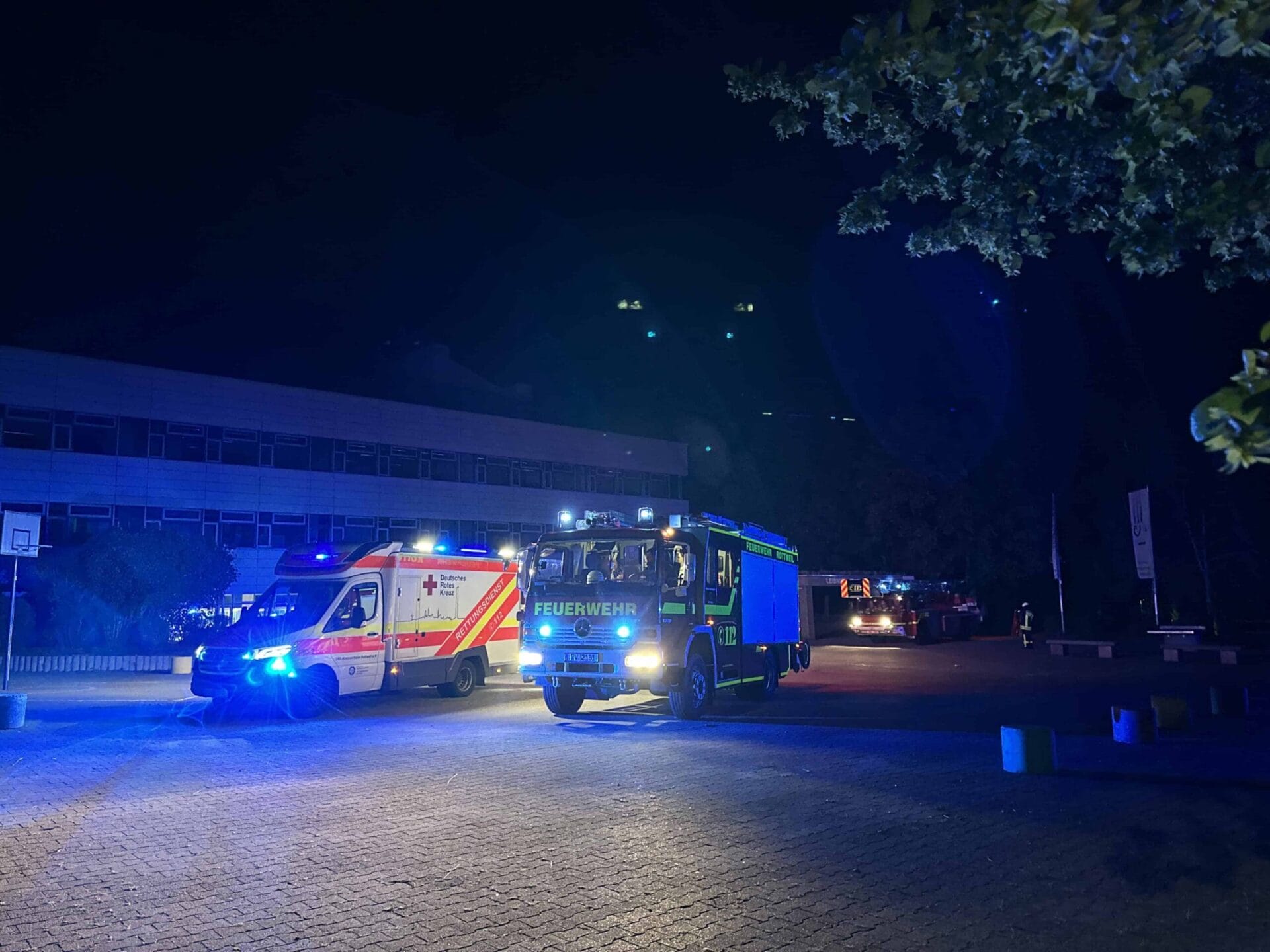 (Rottweil). Binnen Minuten hatte die Feuerwehr Rottweil in der Nacht auf Donnerstag 25 Einsatzkräfte in fünf Fahrzeugen vor Ort. Übrigens: Dieselbe Zahl und Fahrzeugkonfiguration wie bei einem Brandmelderalarm in der Stadt, etwa im Alten Spital. Gegen 3.20 Uhr war der Alarm eingegangen: ebenfalls ein Brandmelderalarm, jetzt im Leibniz-Gymnasium an der Heerstraße. Ein Feuer in der Schule? Mitnichten.