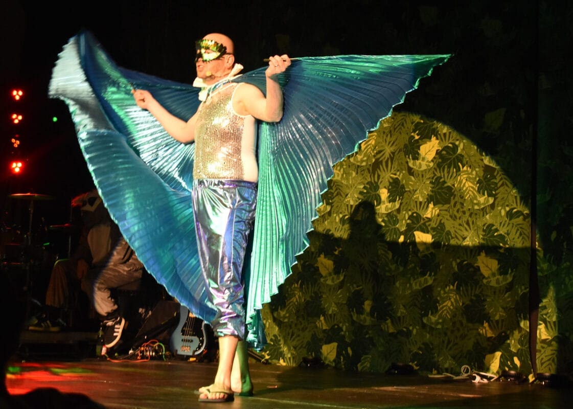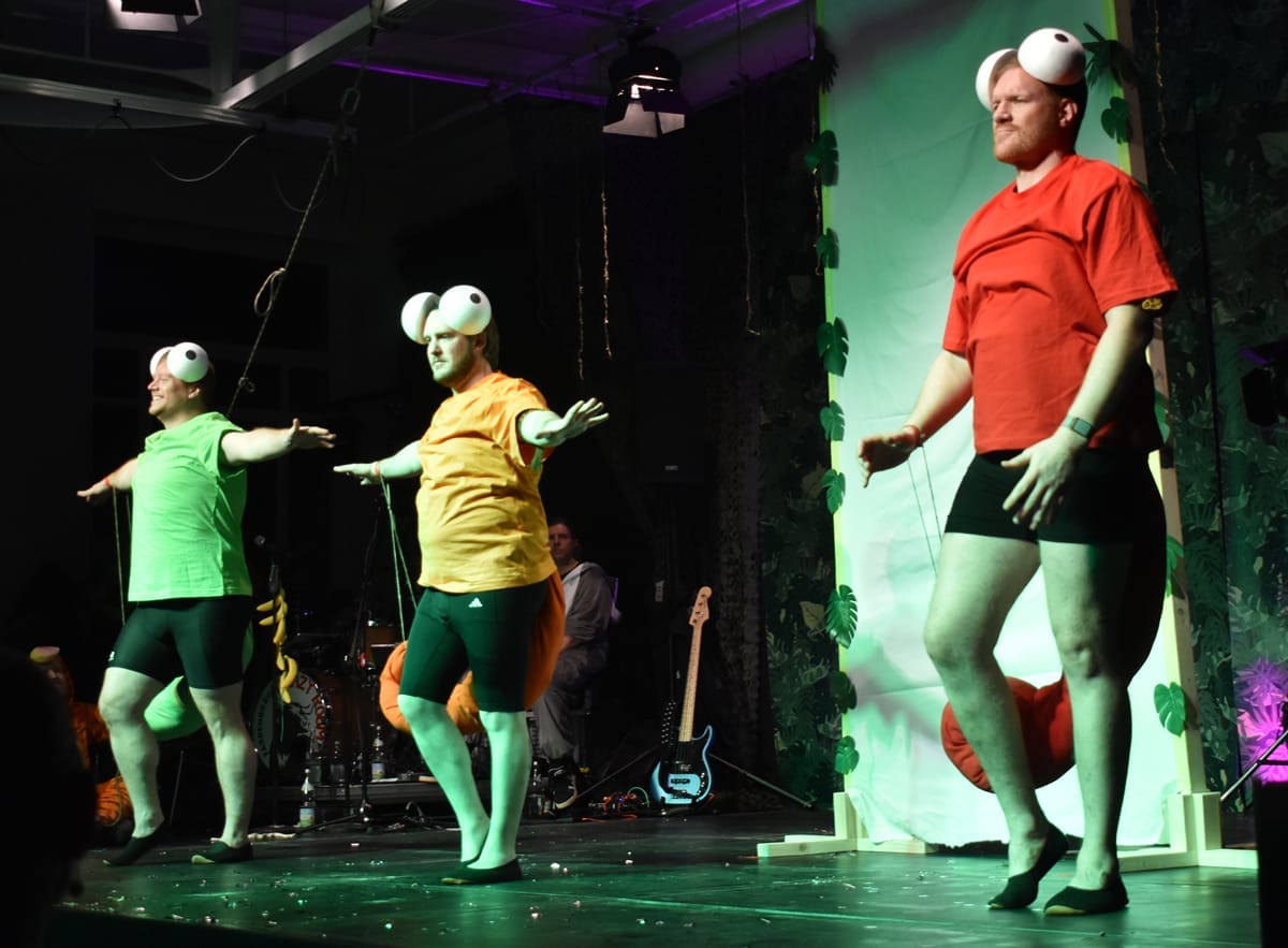 Abwechslung war Trumpf – und so folgte der nächste Wort-Beitrag, diesmal von der ganz jungen Garde, nämlich „Lisa Roth und ihre Mädels“, wie Paradiesvogel Timo sie vorstellte. Sie zogen allerhand heimische Vorkommnisse durch den Kakao, sehr zur Freude des Publikums.