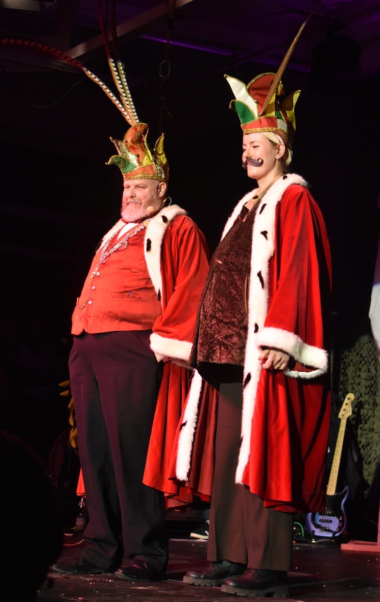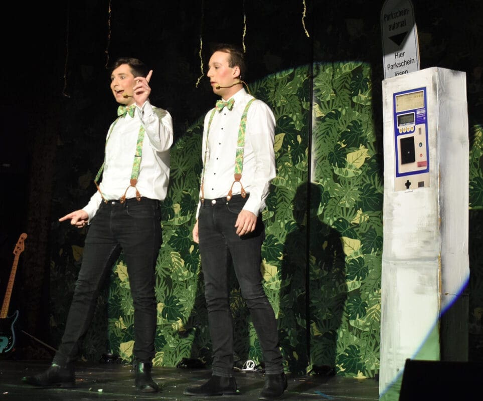 Lisa und Lena Roth als Bajass und Laterne holten die große Politik in den Saal. Es gab ja auch viel zu berichten und zu kritisieren.