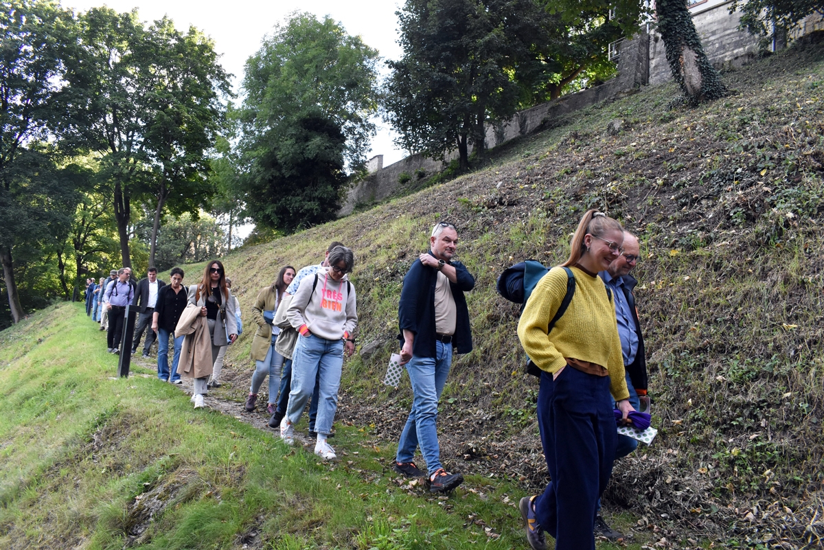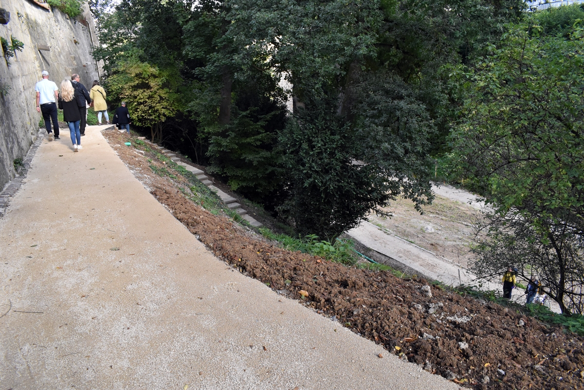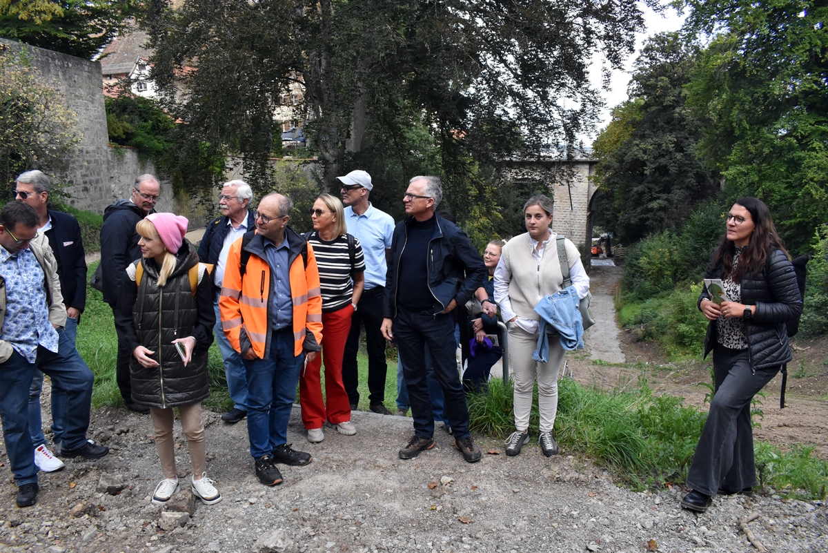 Ein Weg entlang der Stadtmauer zur Talsohle des Grabens ist bereits angelegt, einige Teilnehmer probierten ihn schon mal aus.