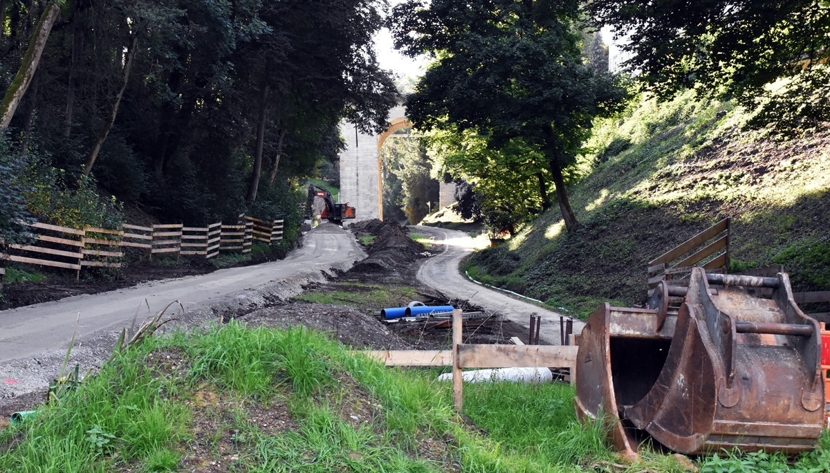 Auch der Weg vom Fuß der Hochbrücke zur Bahnhofstraße ist neu angelegt, aber noch nicht fertig.