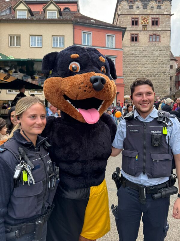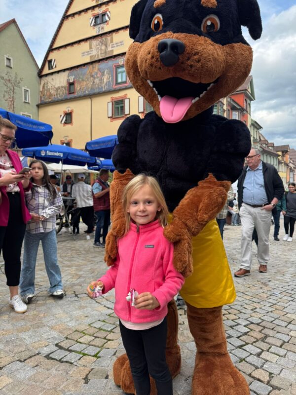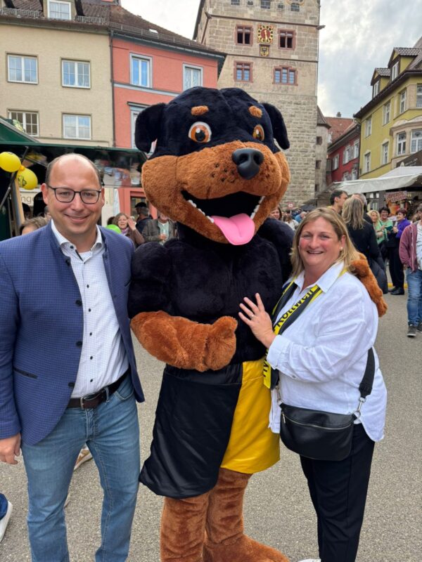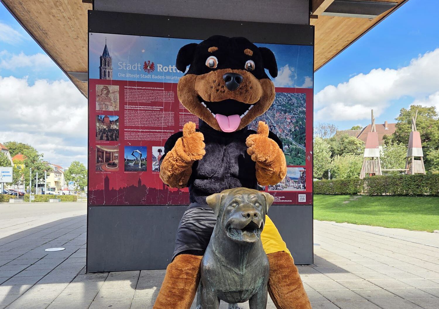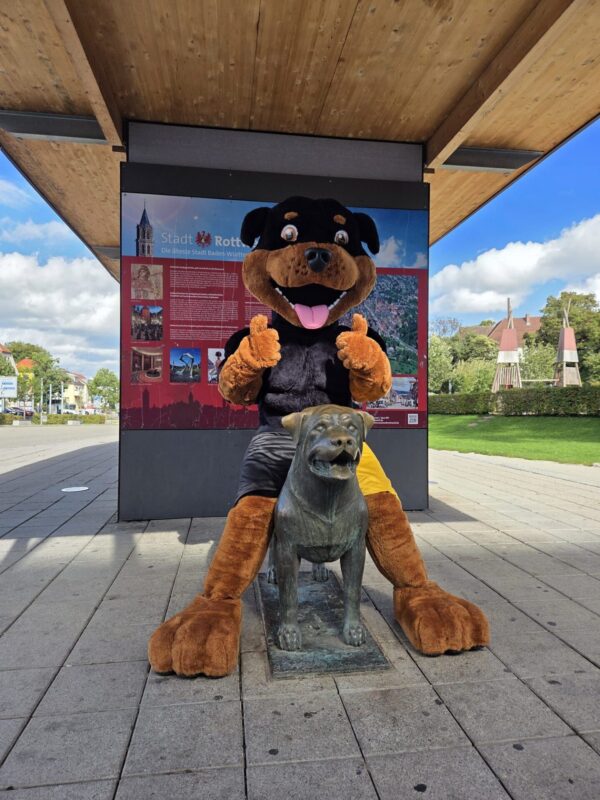Ein Highlight ist das Maskottchen „Milo“, ein sympathischer Rottweiler, der bereits beim „Tag des Rottweilers“ 2019 erstmals öffentlich zum Einsatz kam. Beim Stadtfest hat Milo bereits für Begeisterung gesorgt – besonders bei Familien und Kindern. Als Walking Act war er nicht nur ein beliebtes Fotomotiv, sondern auch ein emotionaler Botschafter der neuen Markenwelt. Es wird künftig auch kleine Kinderbücher geben, in denen Milo Kindern Rottweil vorstellt – „man darf gespannt sein“, versichert Marketingmann Walliser augenzwinkernd.