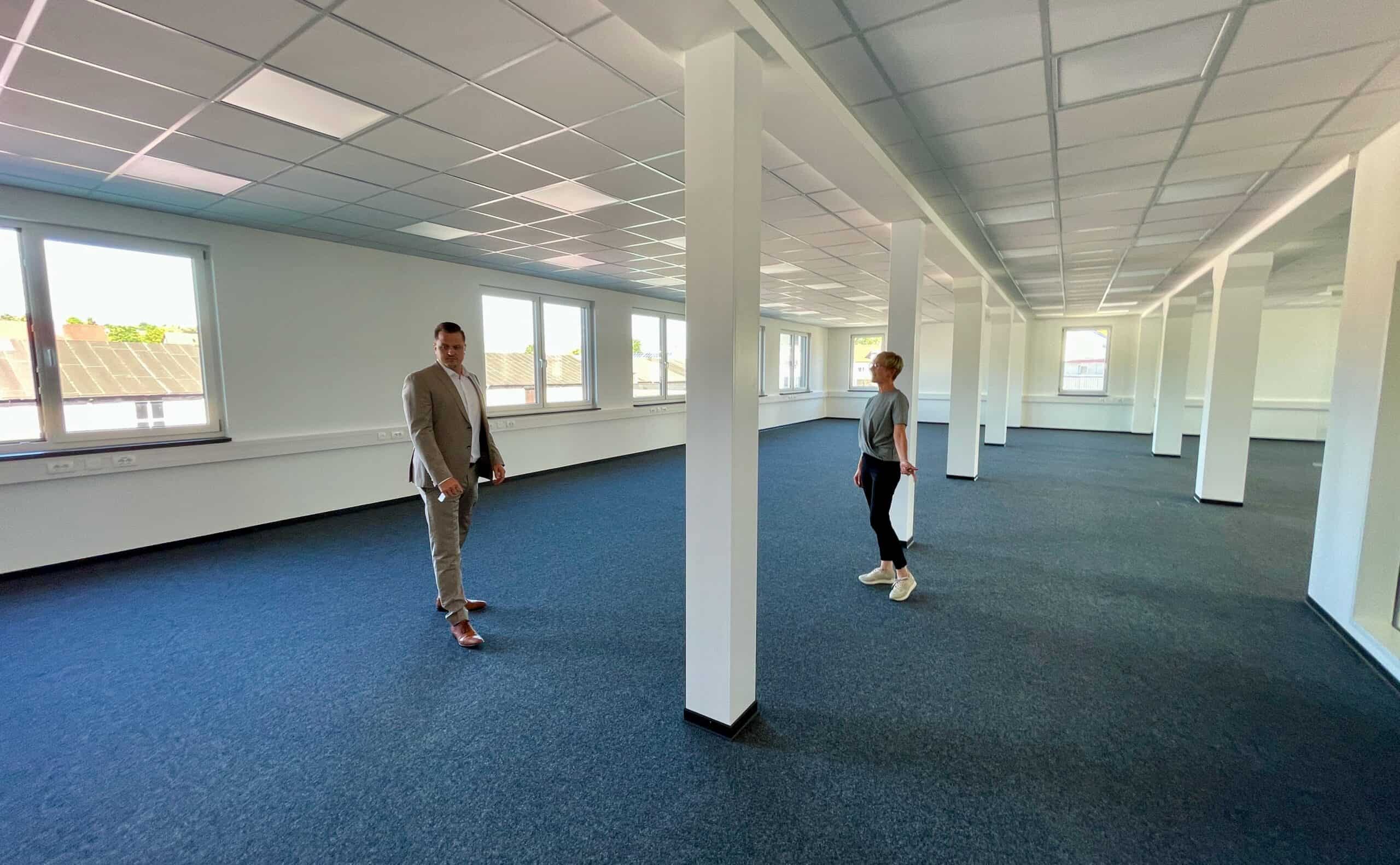 Vier Millionen Euro hat Merz in das Gebäude mit seinen 1500 Quadratmetern Bürofläche investiert. Der Mietvertrag mit dem Jobcenter ist auf zehn Jahre angelegt – und wird diese Summe bei weitem nicht einspielen. „Da benötigen wir mehrere Perioden“, erklärt Philipp Merz. Er sagt auch: „Wir sind froh, dass wir das Jobcenter als Mieter bekommen haben.“ Zeller ergänzt: „Es ist eine gute, erfolgreiche Zusammenarbeit.“ Und wiederum Merz: „Wir hatten unkomplizierte, kurze Wege, konnten auch eilige Entscheidungen rasch treffen.“ Beide lachen während des Gesprächs häufig, sind gelöst, haben als Geschäftspartner offenbar einen Draht zueinander gefunden. „Das war“, fasst Zeller zusammen, „eine gute Fügung.“