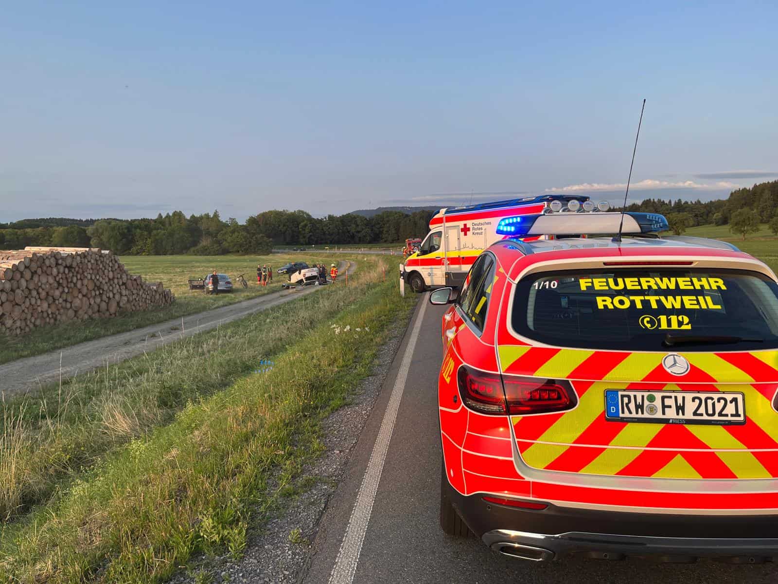 Rottweil. Am Donnerstagabend hat sich auf der B27 bei Rottweil-Neukirch ein schwerer Verkehrsunfall ereignet – bei dem die Insassen des betroffenen Fahrzeugs, ein VW Polo, nach ersten Informationen der Polizei glücklicherweise nicht schwer verletzt worden sind. Im Einsatz waren neben der Polizei der Rettungsdienst und die Feuerwehr. Helfer vor Ort betreuten die Insassen des Unfallwagens bis zum Eintreffen der DRK-Retter.