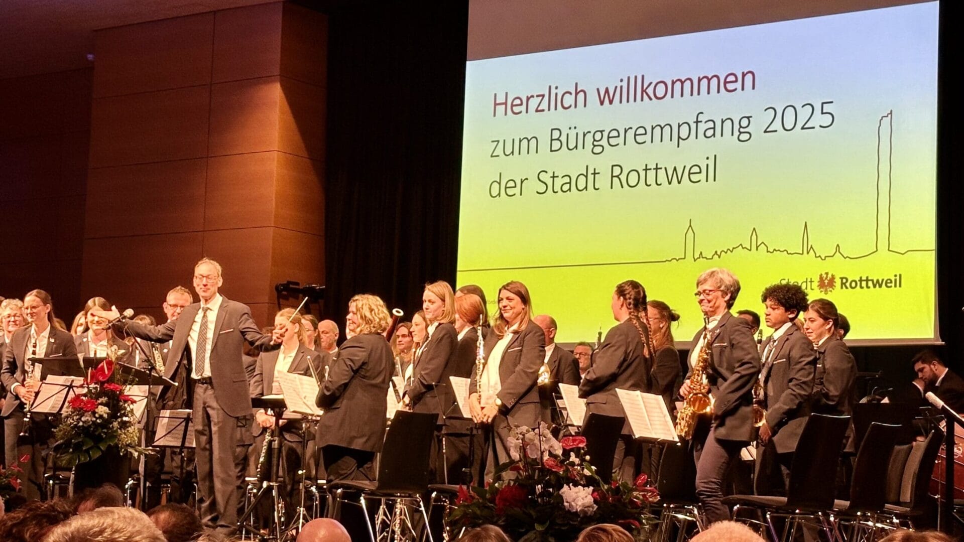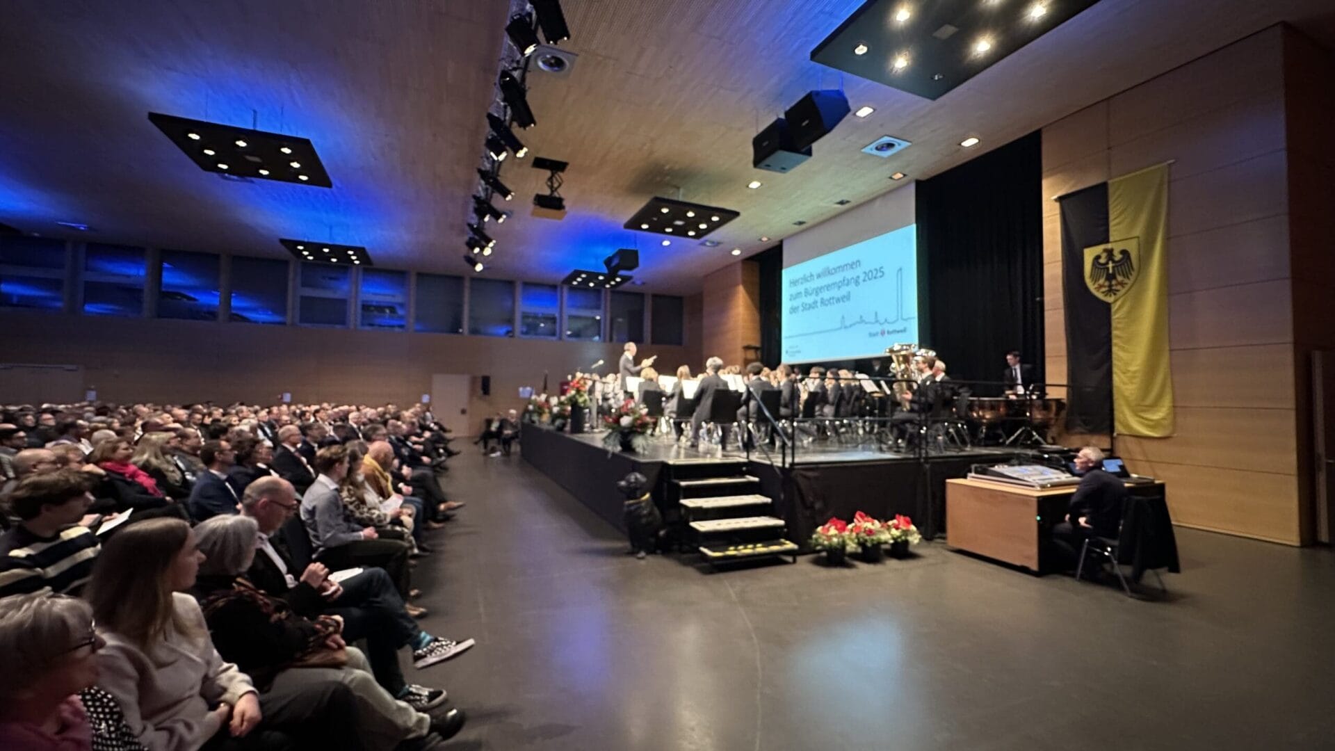 ich begrüße Sie alle sehr herzlich zum Bürgerempfang 2025 der Stadt Rottweil hier in unserer Stadthalle. In der letzten halben Stunde durfte ich vielen von Ihnen bereits persönlich ein gutes neues Jahr wünschen. Diese guten Wünsche möchte ich von dieser Stelle aus sehr gerne noch einmal an alle Gäste im Saal richten. Auch bei diesem Bürgerempfang kann ich wieder auf vollbesetzte Reihen blicken. Darüber freue ich mich sehr, und dafür möchte ich Ihnen danken. Die große Resonanz unterstreicht den Stellenwert der Veranstaltung und spiegelt zugleich das Interesse an unserem Gemeinwesen und an unserer Stadtentwicklung wider. Das ist in meinen Augen außerordentlich wichtig. Denn die Stadt, das sind nicht die Gebäude, die öffentlichen Einrichtungen oder die Stadtverwaltung. Die Stadt, das sind wir alle. Die Menschen, die hier leben und arbeiten, die sich einbringen in die Gemeinschaft, die sich für andere engagieren – kurz: die etwas bewegen. Und, liebe Mitbürgerinnen und Mitbürger, Rottweil ist in Bewegung. Man kann das an vielen Stellen in der Stadt sehen. Darauf möchte ich gerne später noch näher eingehen. (…)