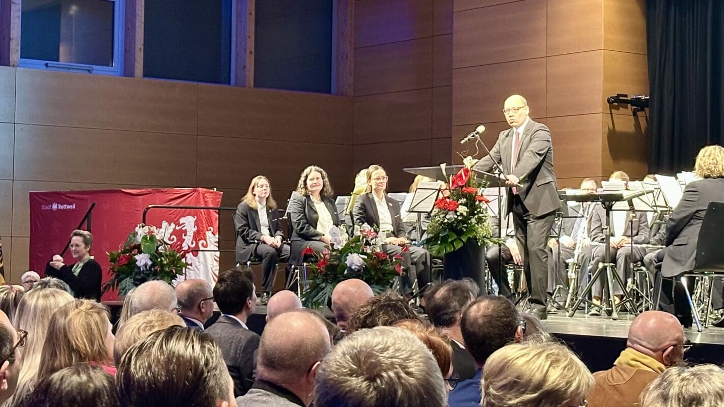 Wie Sie wissen, hat die Kommunalwahl im vergangenen Jahr auch in Rottweil Veränderungen in der Zusammensetzung des Gremiums gebracht. Mehrere langgediente Stadträtinnen und Stadträte sind ausgeschieden, neue Gesichter haben am Ratstisch Platz genommen. Ich freue mich, dass auch junge Menschen kandidiert haben, gewählt wurden und bereit sind, sich für die Gemeinschaft und für ihre Stadt zu engagieren. Sie werden in diesem Jahr richtungweisende Beschlüsse für die künftige Entwicklung von Rottweil fassen.