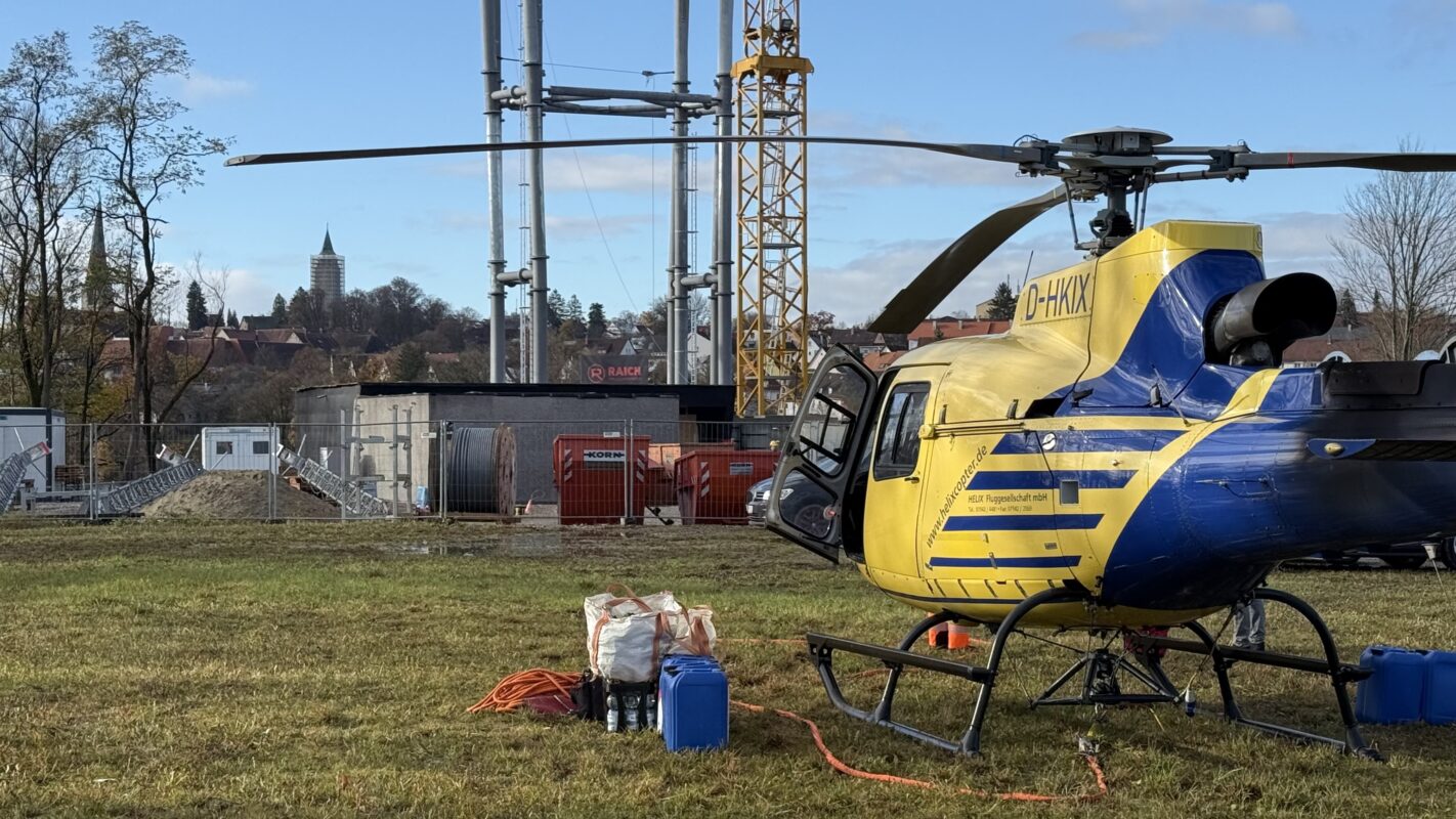 Bei der Neckarline ist das nächste sichtbare Highlight vollendet: Am Montagmorgen wurde die Seilzugverbindung zwischen dem Berner Feld und der Innenstadt hergestellt – ein entscheidender Meilenstein im Brückenbau, der erstmals die Verbindung über das Neckartal sichtbar macht. Ein Hubschrauber machte den Job. Er traf ein und drehte zunächst ein paar Runden über der Einsatzstelle.