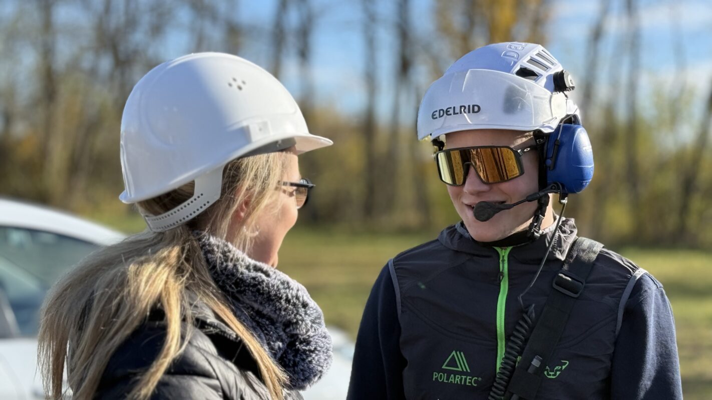 Brücken-Standortleiterin Nicola Bax (links) im Gespräch mit einem jungen Helikopter-Spezialisten.