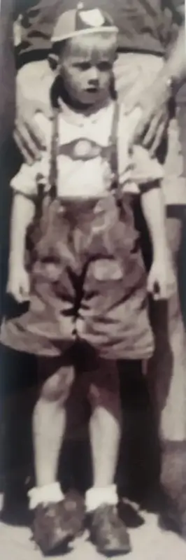 Guntram Vater: Ja (lacht)! Ein Bub auf einer Aufnahme aus dem Jahr 1952. Er ist auf einem Gruppenbild der Narrenzunft zu sehen, das in Nürnberg entstand, wo die Zunft beim hundertjährigen Jubiläum des Germanischen Nationalmuseums im Hochsommer Brauchtumsaufführungen zeigte. Der Bub steht vor etwa 40 Leuten – mit Lederhose, Kniestrümpfen und einem damals hoch modernen Käpple mit Andenken-Ansteckern.