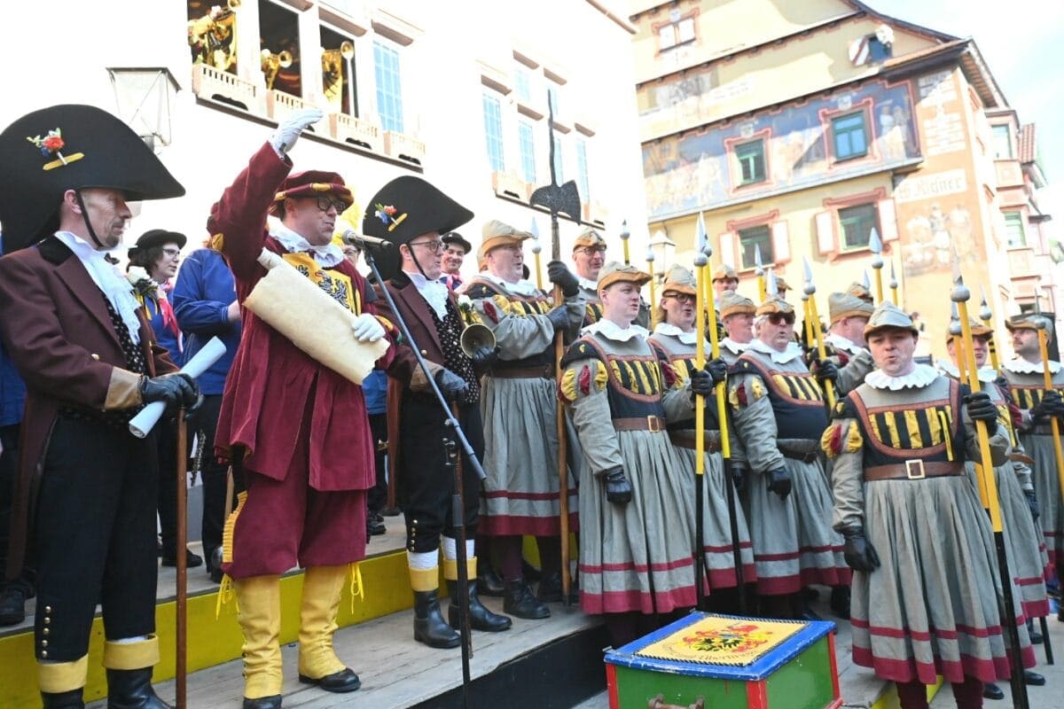 Um klamme Kassen, Nachhaltigkeit, träge Verwaltung und mehr ging es bei der Proklamation am Fasnetssonntag. Am Ende kam der erlösende Appell: „Drum uf ihr Leit‘, send au gscheit ond narret, was‘ zom narren geit!“