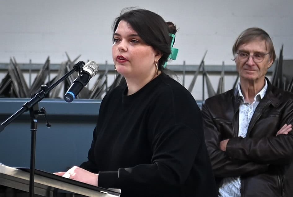 Die diesjährige Trägerin des im Zweijahres-Turnus verliehenen Preises, Zuzanna Czebatul war bei der Vernissage anwesend. Acht von ihr in den vergangenen Wochen vor Ort gefertigte Skulpturen konnten in Erich Hausers Werkhalle am Samstag in Augenschein genommen werden.