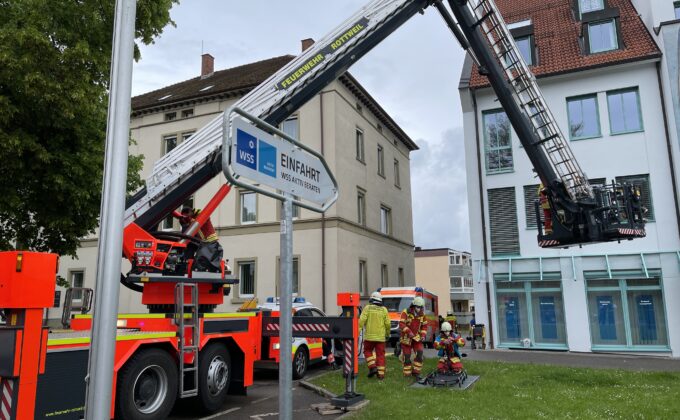 Um eine Patientin aus einem Wohn- und Geschäftshaus in Rottweil zu retten, haben die Einsatzkräfte des DRK am Samstag die Feuerwehr um Unterstützung gebeten. Damit startete eine aufsehenerregende Aktion in der Innenstadt.