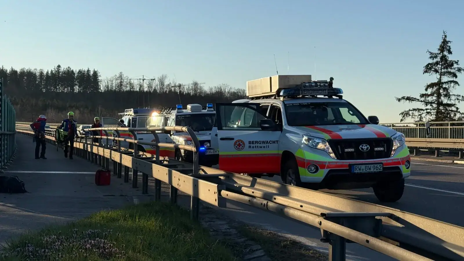 Der Einsatzort war die 2001 erbaute Brücke, auf der die B 27 Rottweil umgeht. Der zu rettende Mann hat sich laut Einsatzkräften etwa 50 bis 100 Meter entfernt im Hang befunden. Der Grund ist unklar, es sah allerdings nach einem missglückten Kletter- oder Wanderversuch aus.