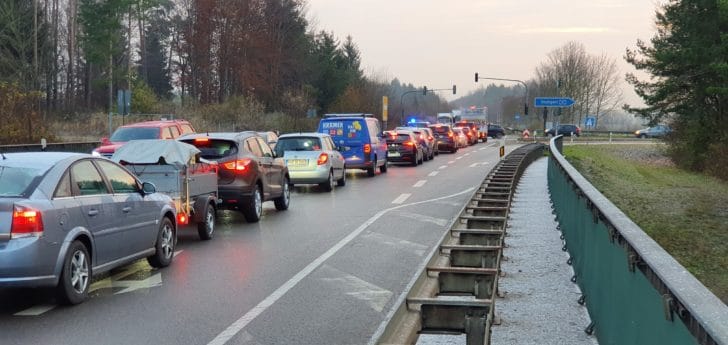 Vor der Abfahrt Rottweil / Zimmern aus Richtung Singen staut sich der Verkehr bereits auf einer längeren Strecke. Leser berichten von einem Zeitverlust von einer knappen halben Stunde.