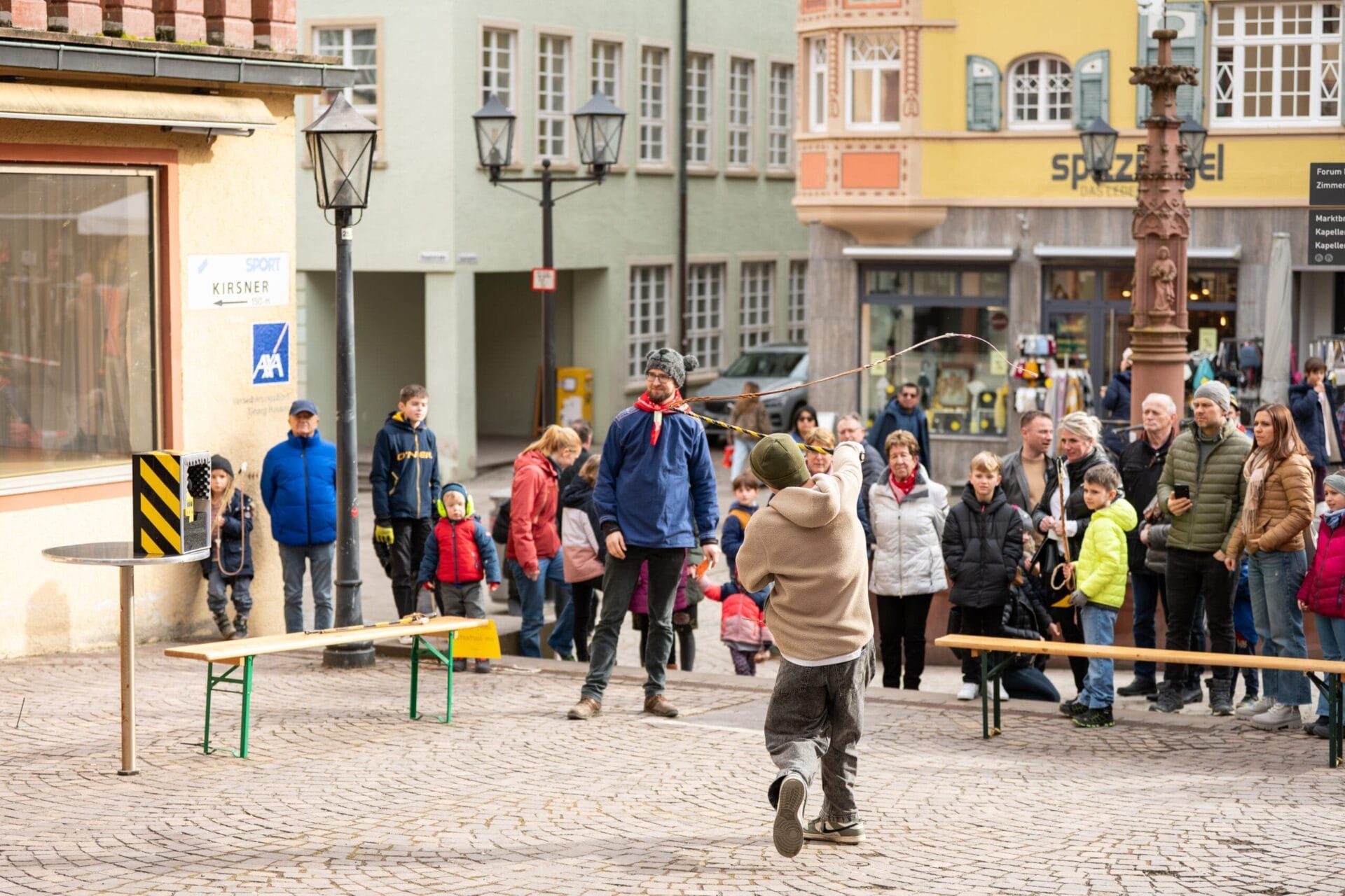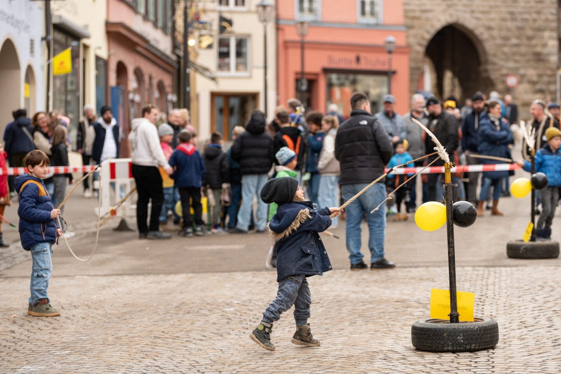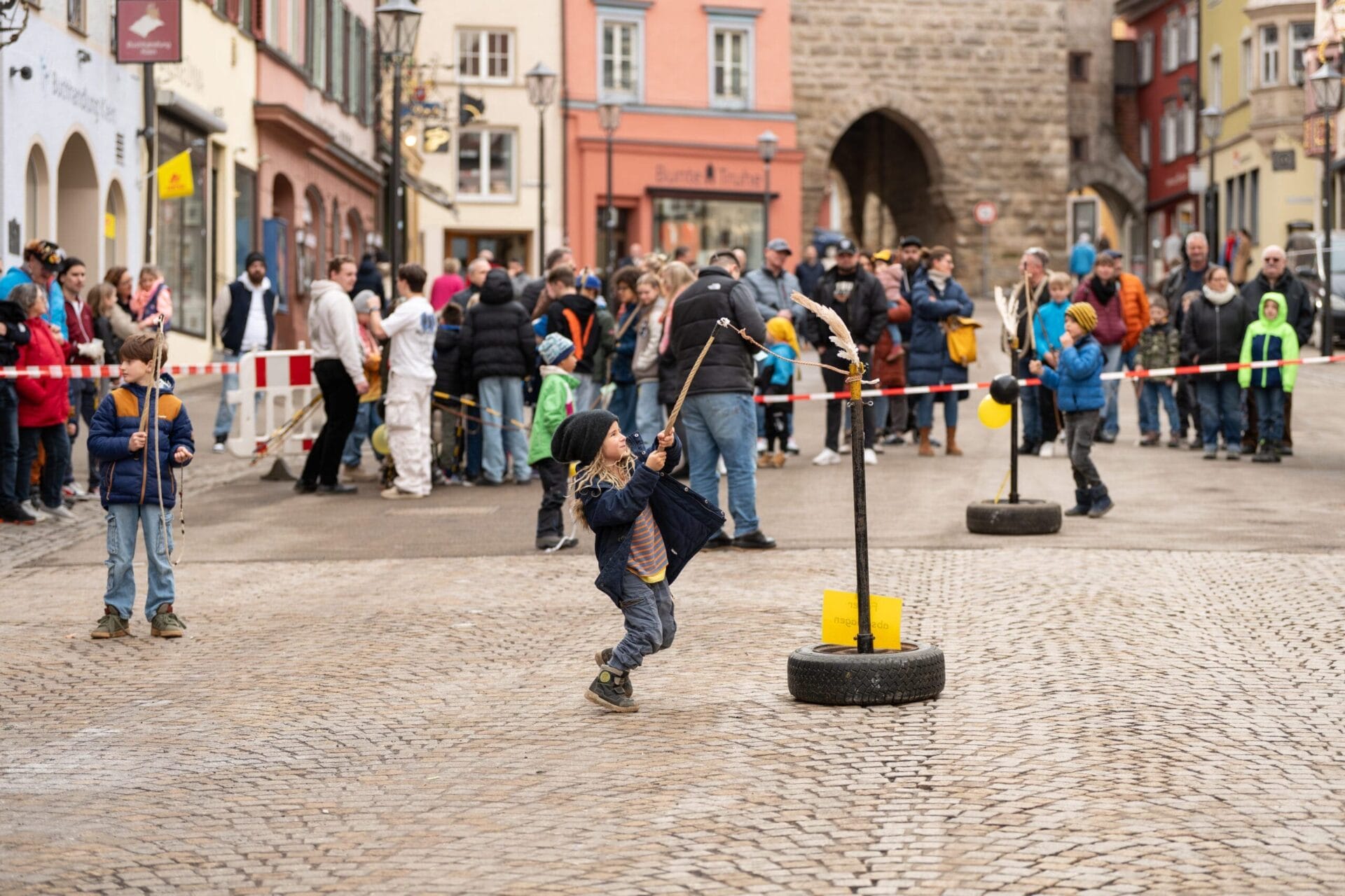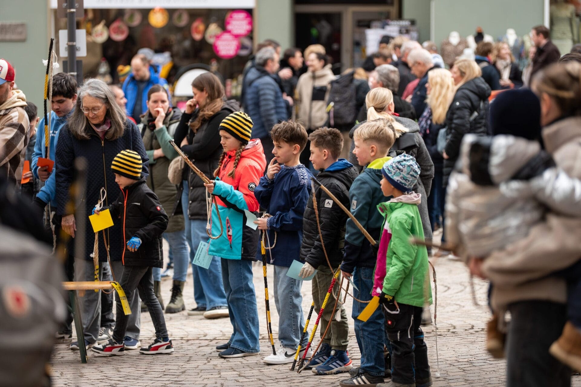 Seit dem Abstauben an Dreikönig wird in Rottweil wieder fleißig das Klepfen geübt. Beim entsprechenden Wettbewerb konnten sich an diesem Samstag die Nachwuchsklepfer – aufgeteilt in vier Altersgruppen – an fünf unterschiedlichen Stationen miteinander messen. Der Veranstaltungsort, ganz traditionell: die Obere Hauptstraße vor dem Alten Rathaus.