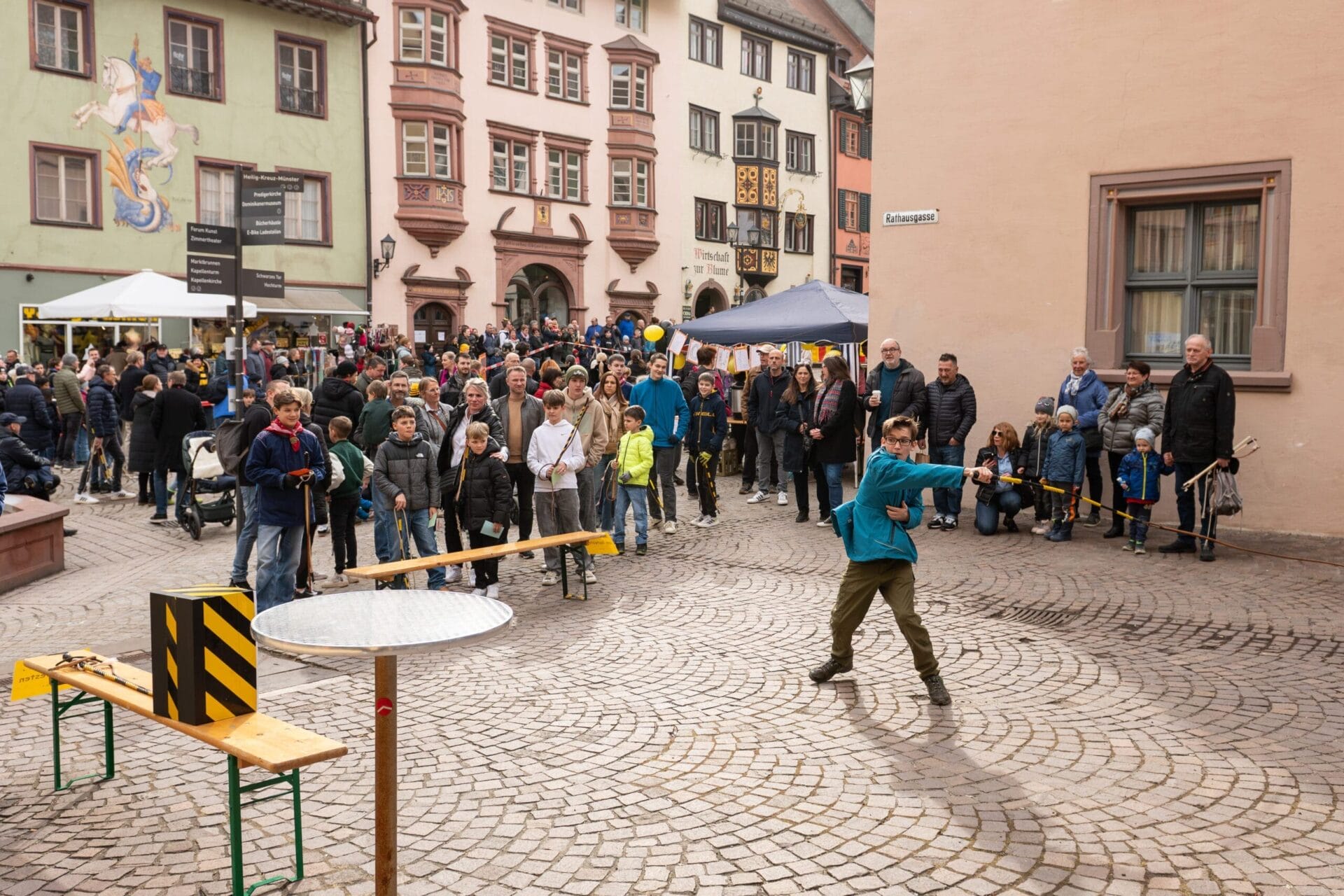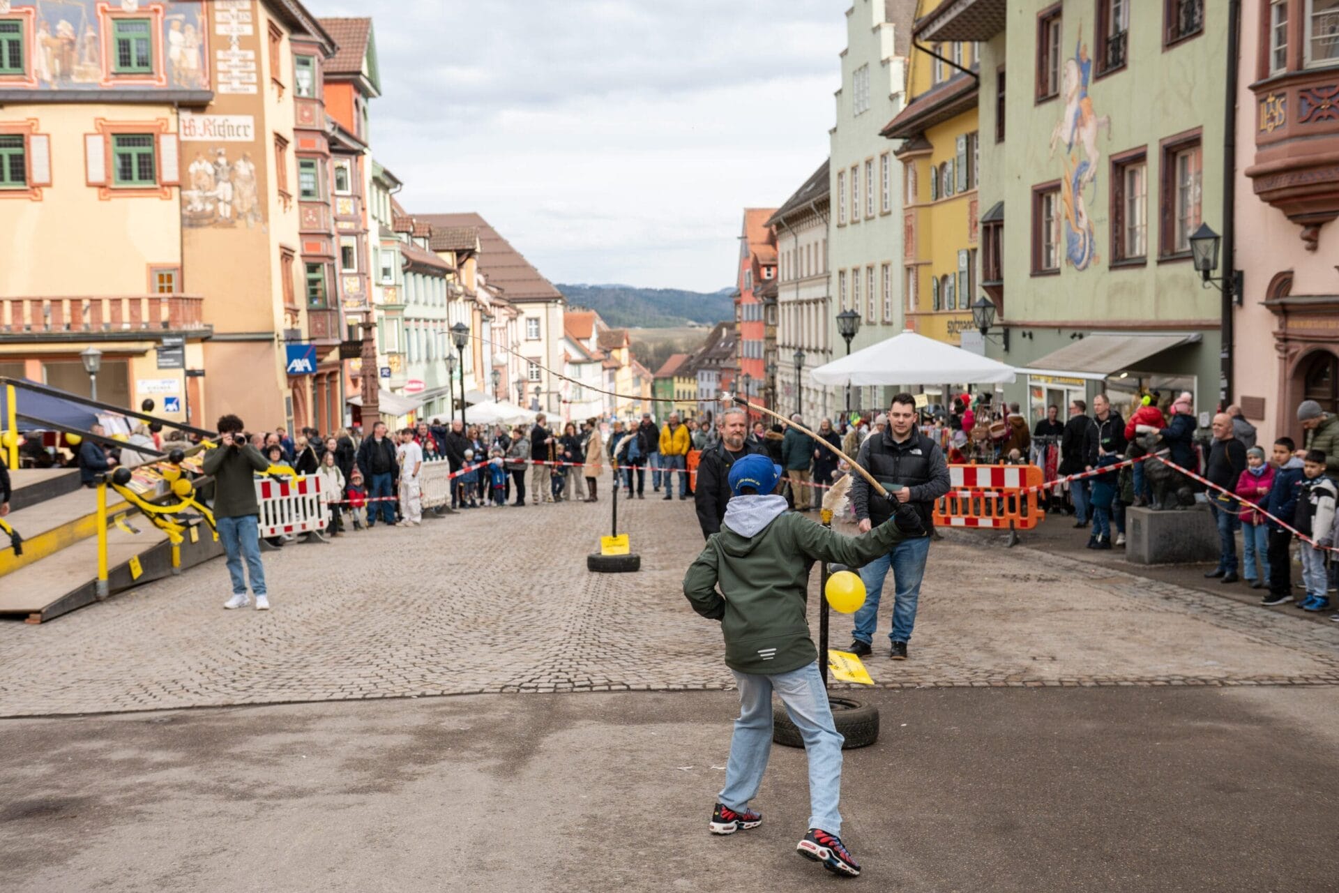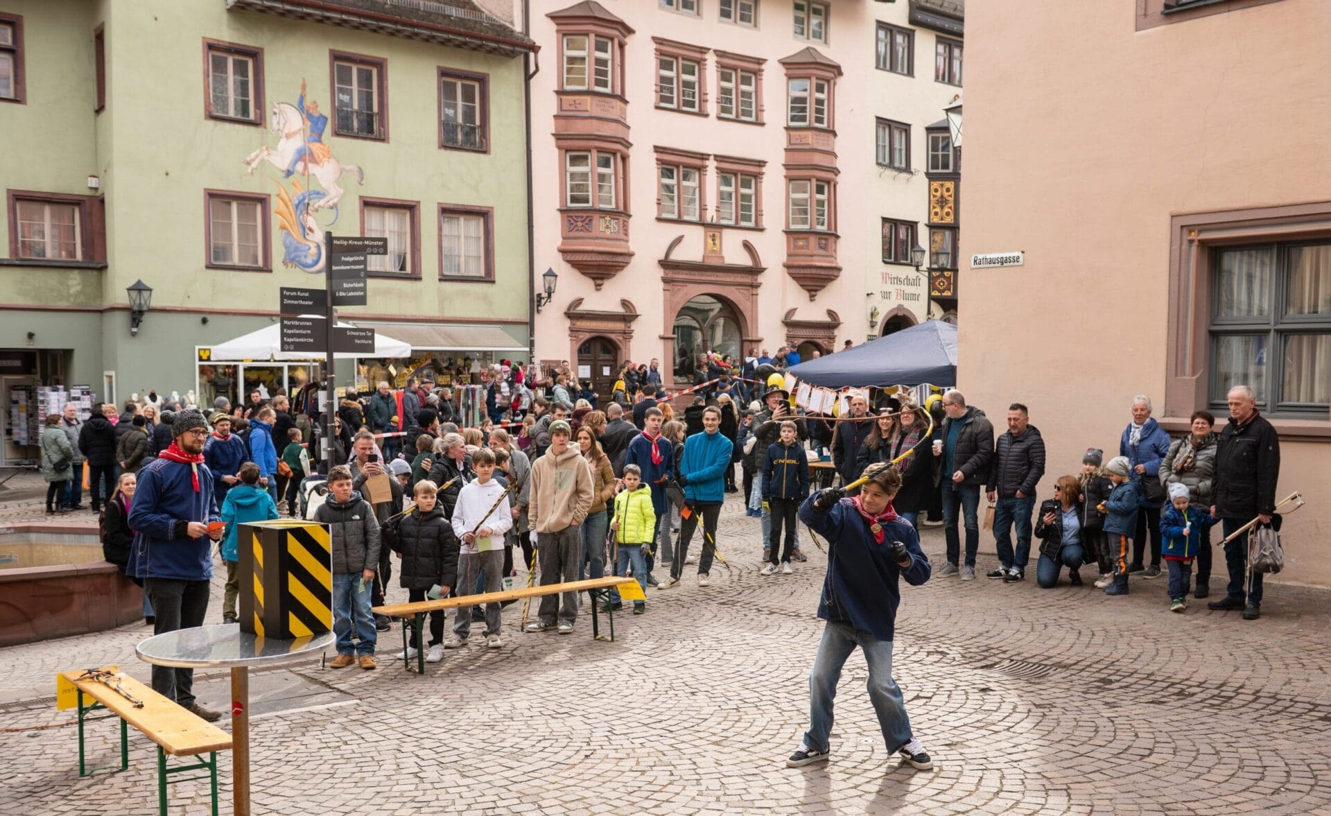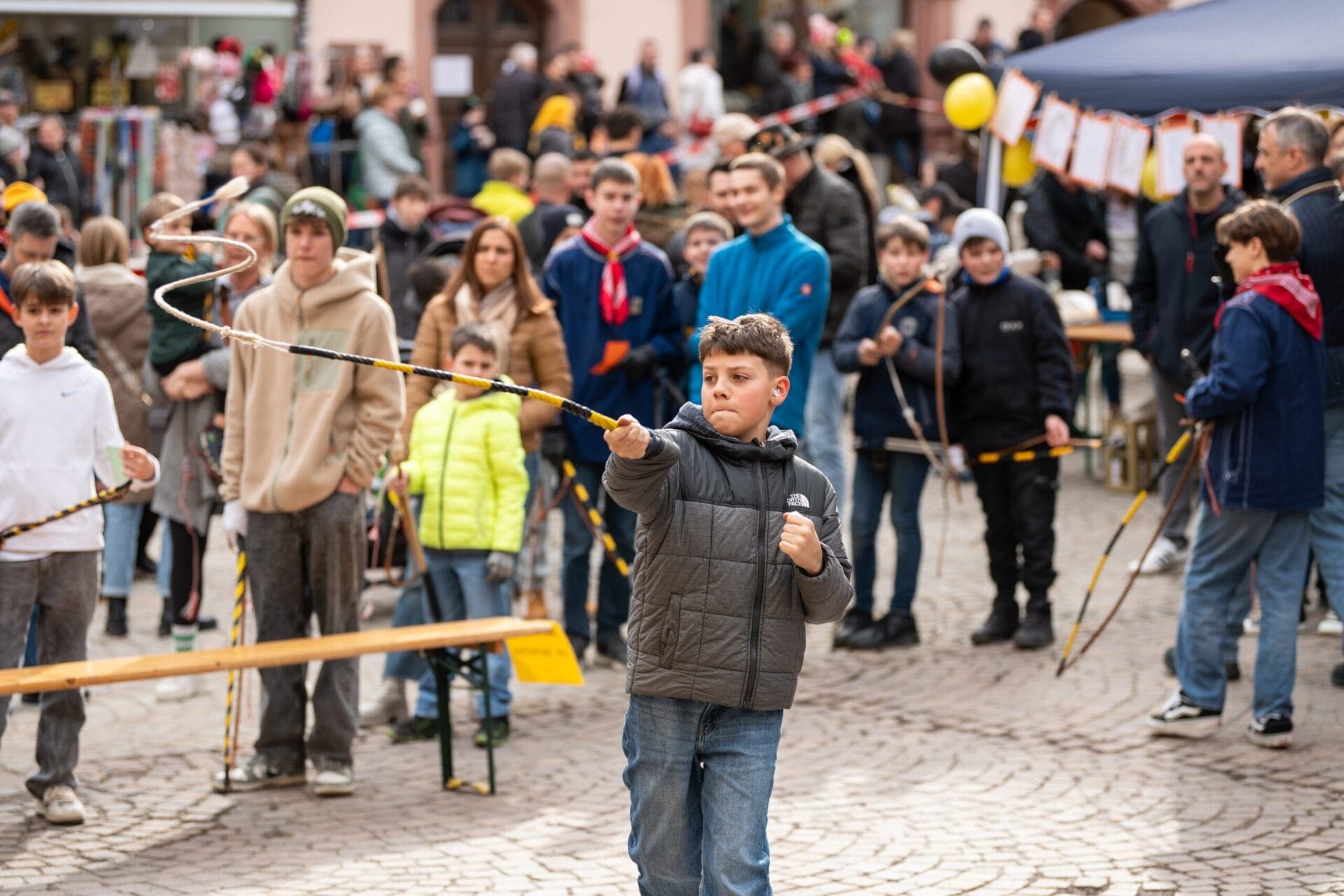 Seit dem Abstauben an Dreikönig wird in Rottweil wieder fleißig das Klepfen geübt. Beim entsprechenden Wettbewerb konnten sich an diesem Samstag die Nachwuchsklepfer – aufgeteilt in vier Altersgruppen – an fünf unterschiedlichen Stationen miteinander messen. Der Veranstaltungsort, ganz traditionell: die Obere Hauptstraße vor dem Alten Rathaus.