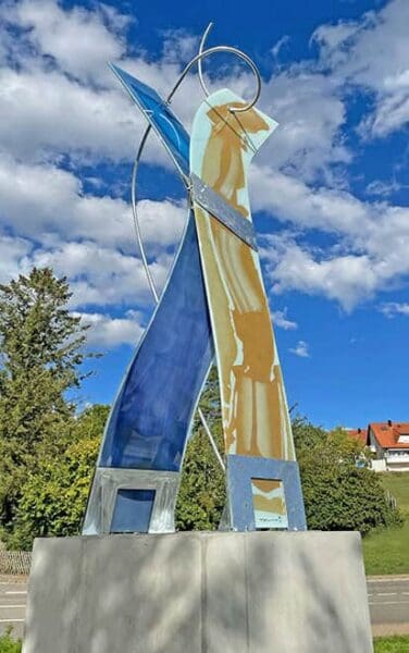 Mit einer deutlich kürzeren Anreise kann man ein weiteres 2022 realisiertes Kammerer-Werk bestaunen: Eine eindrucksvolle Stele, mit der Empfingen sein 1250-Jahr-Jubiläum feierte, erhielt seine Gestalt ebenfalls in der früheren Derix-Werkstatt. Stolze sechseinhalb Meter ragt das Objekt mittlerweile im Nordschwarzwald in die Höhe – ein weiterer Beleg dafür, dass die Rottweiler Glaskunst-Erfolgsgeschichte mit einer zeitgemäßen Formensprache selbstbewusst weitergeschrieben wird.