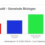 Update, 18.13 Uhr: Das erste Ergebnis liegt vor. Vom Bürgerhaus in Neukirch. Dort siegt Dr. Christian Ruf mit 56,44 Prozent vor Simon Busch 38,65. Joachim Bloch erhält knapp 5 Prozent. Die Wahlbeteiligung dort, im Teilort: bescheidene 31,3 Prozent. Dies ist Ergebnis 1 von 25. Es wird noch eine Menge passieren.